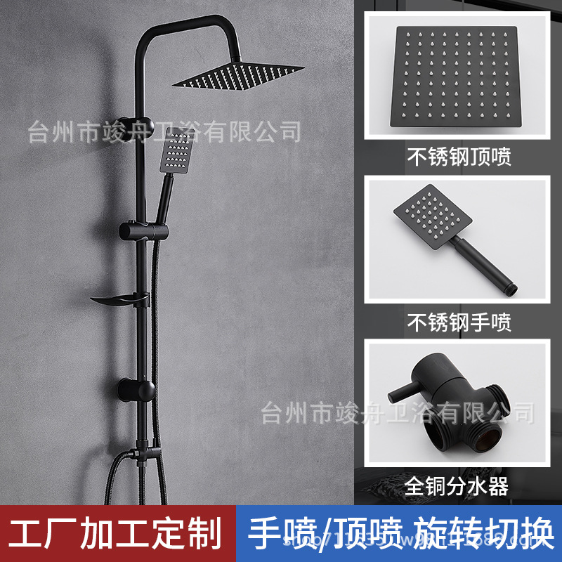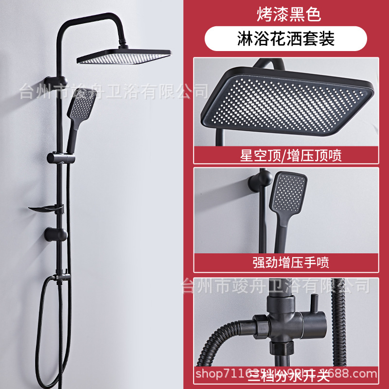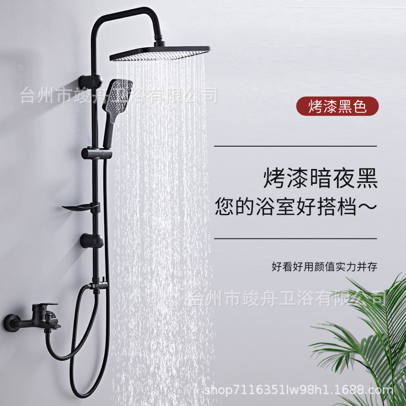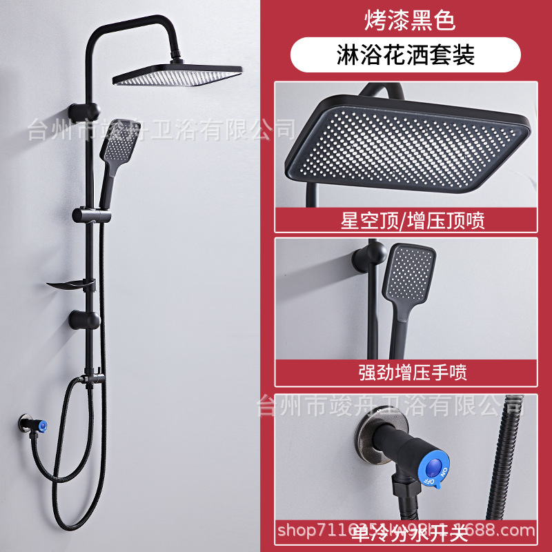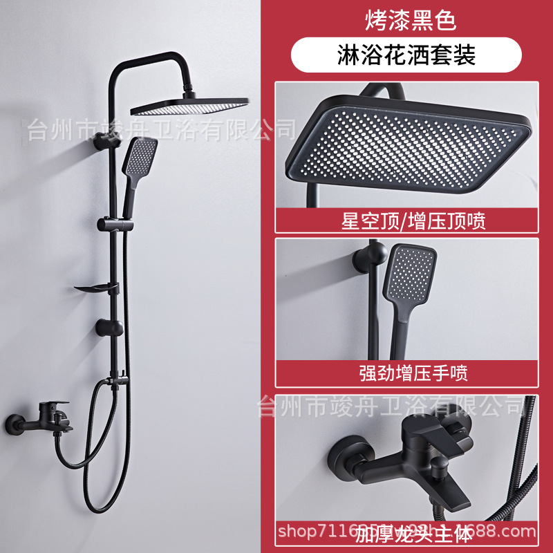 국경 구리 샤워 세트 블랙 혼합 밸브 욕조 수도꼭지 간단한 샤워 가압 상단 노즐스토어 가기