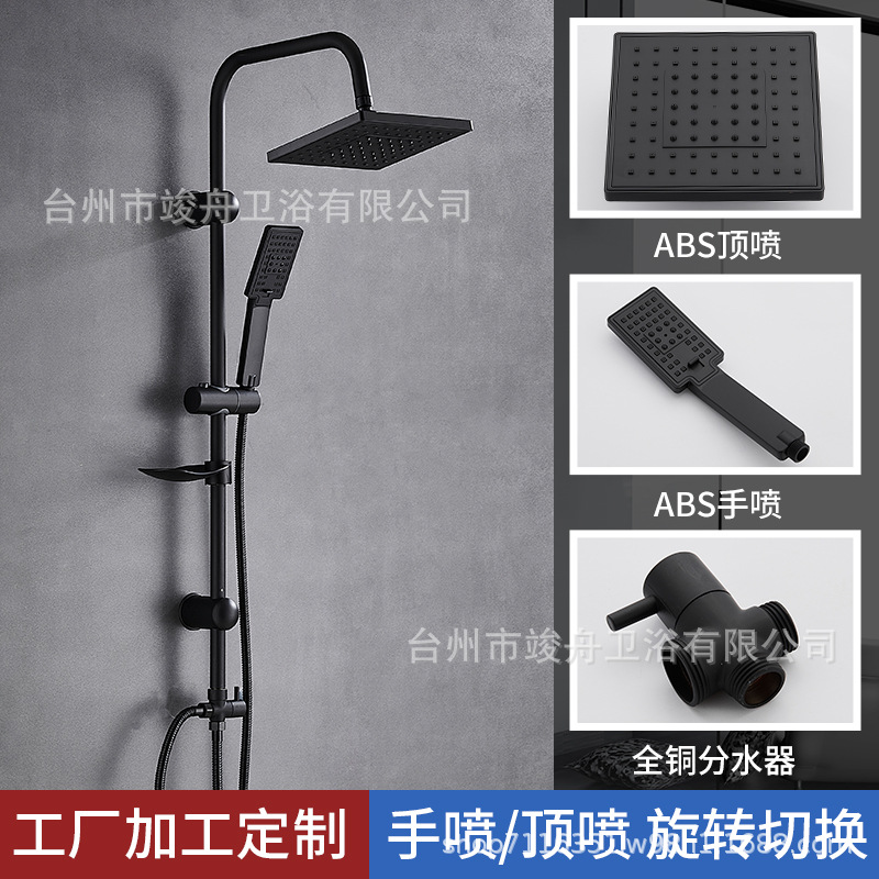 국경 구리 샤워 세트 블랙 혼합 밸브 욕조 수도꼭지 간단한 샤워 가압 상단 노즐