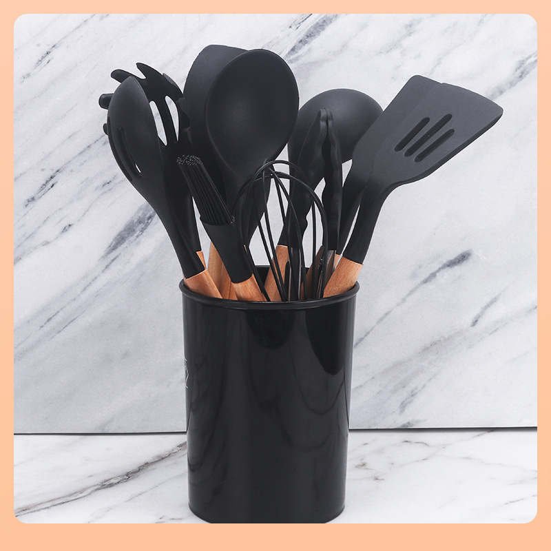✅ 주방 요리 도구 주방 세트 검은색 나무 손잡이 실리콘 주방 용품 11종 세트 논스틱 팬 세트스토어 가기