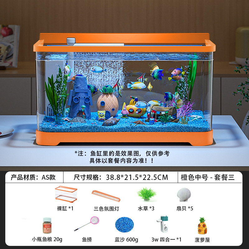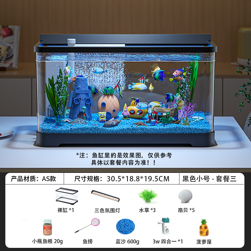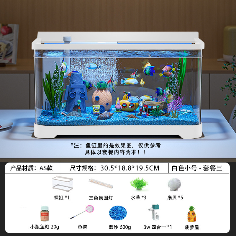 Kuo Ting Fish Tank Office 작은 가정용 데스크탑 풍경 플라스틱 수족관 빛과 3 대 1 여과 된 물