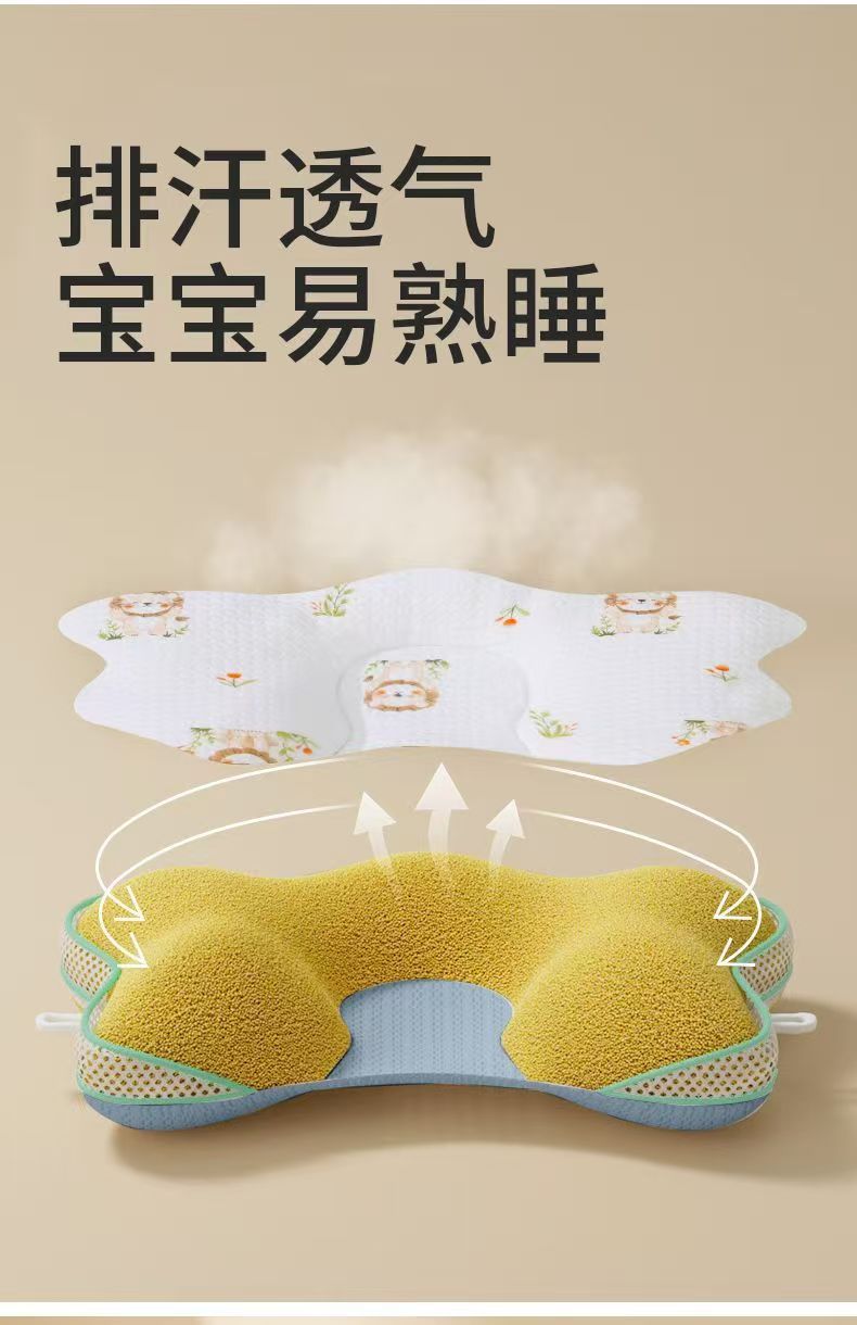 기장 베개 아기 모양의 베개 수면 머리 유형 0-6 개월 교정 머리 유형 보정 보트 머리 베개 케이스 여름 통기성