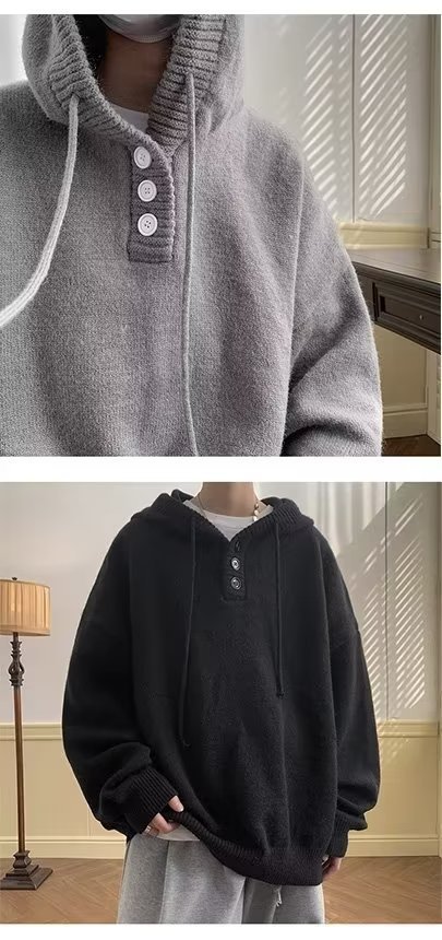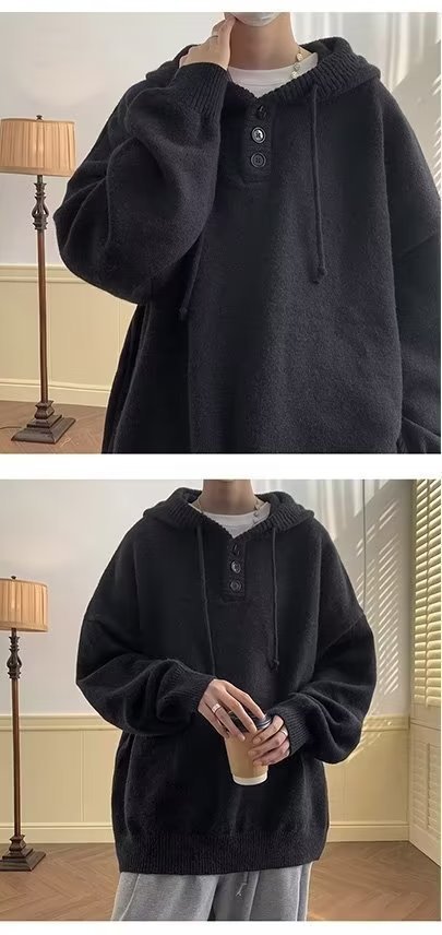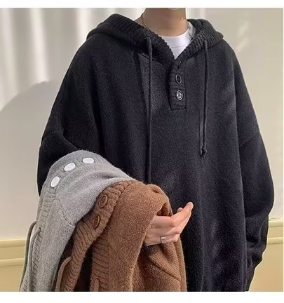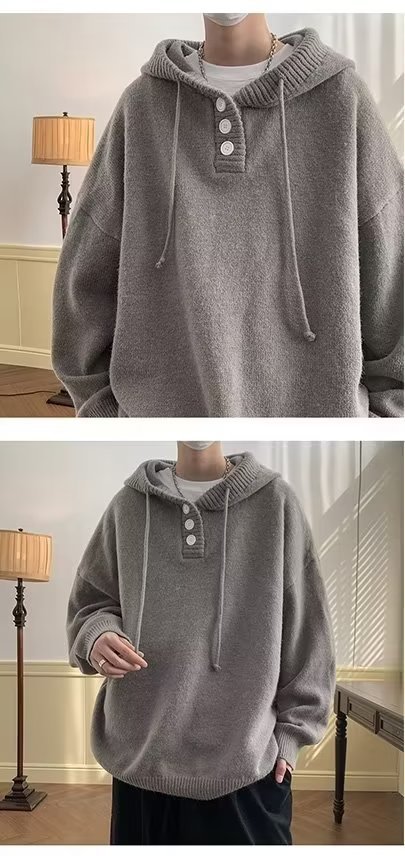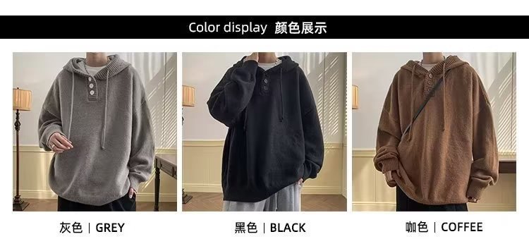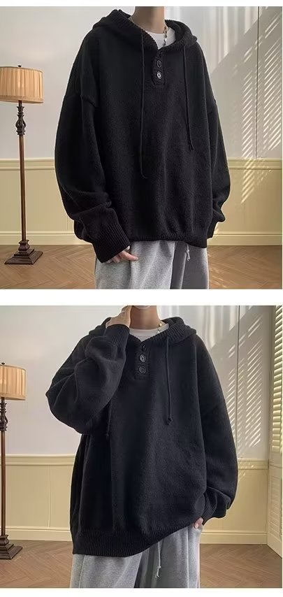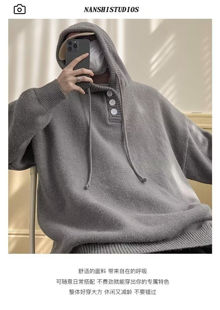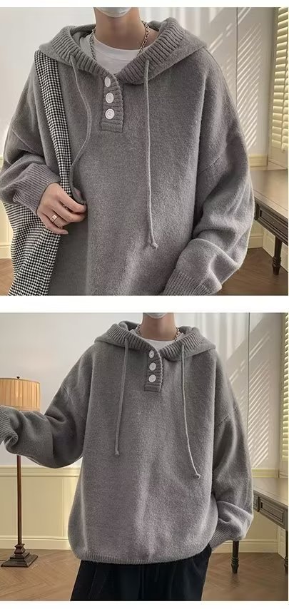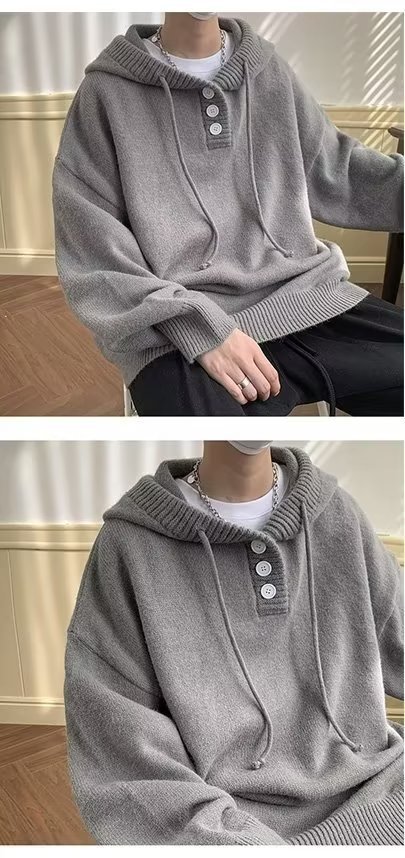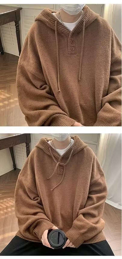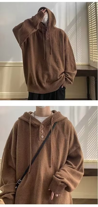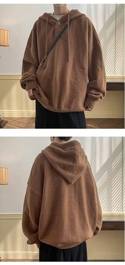 후드 스웨터 남성 봄과 가을 일본 스타일 레트로 게으른 코트 트렌디 패션 모자 스웨터 헤비
