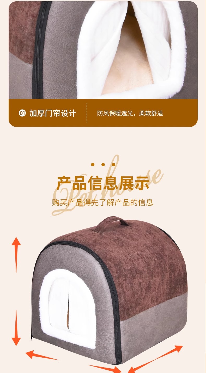 도매 애완 동물 고양이 따뜻한 고양이 둥지 가정 겨울 고양이 집 개 사육장 모든 계절을위한 휴대용 지퍼