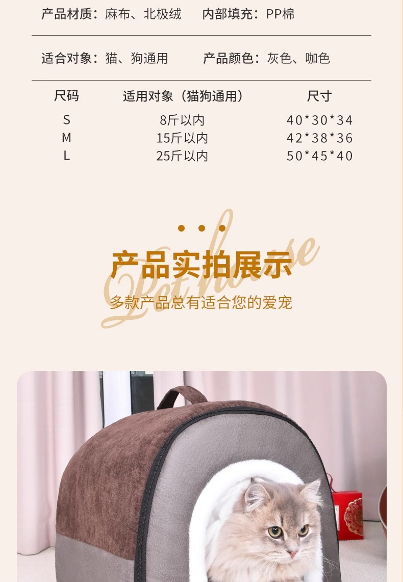 도매 애완 동물 고양이 따뜻한 고양이 둥지 가정 겨울 고양이 집 개 사육장 모든 계절을위한 휴대용 지퍼스토어 가기
