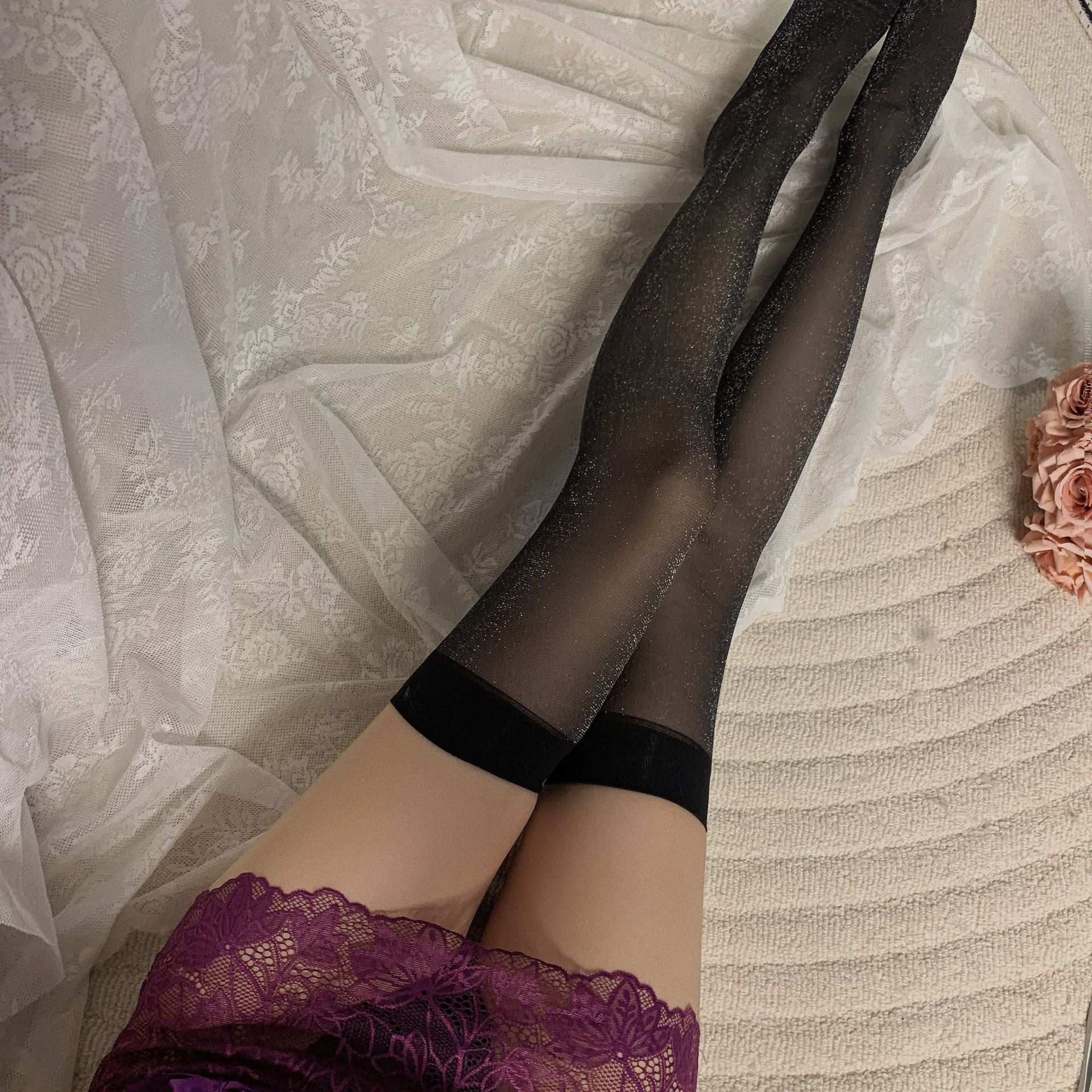 • 레이스 블랙 망사 스타킹