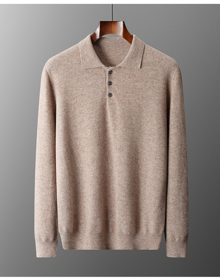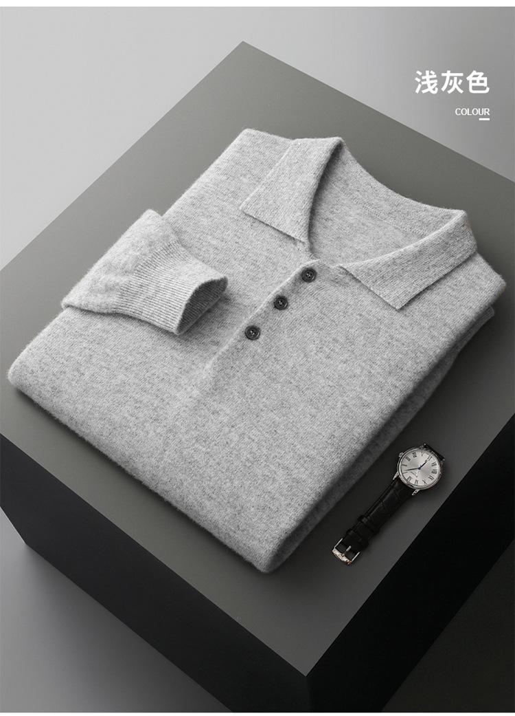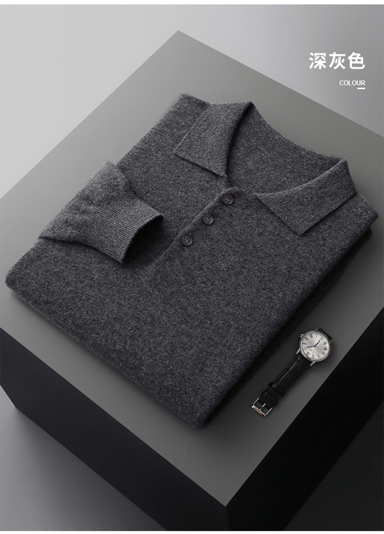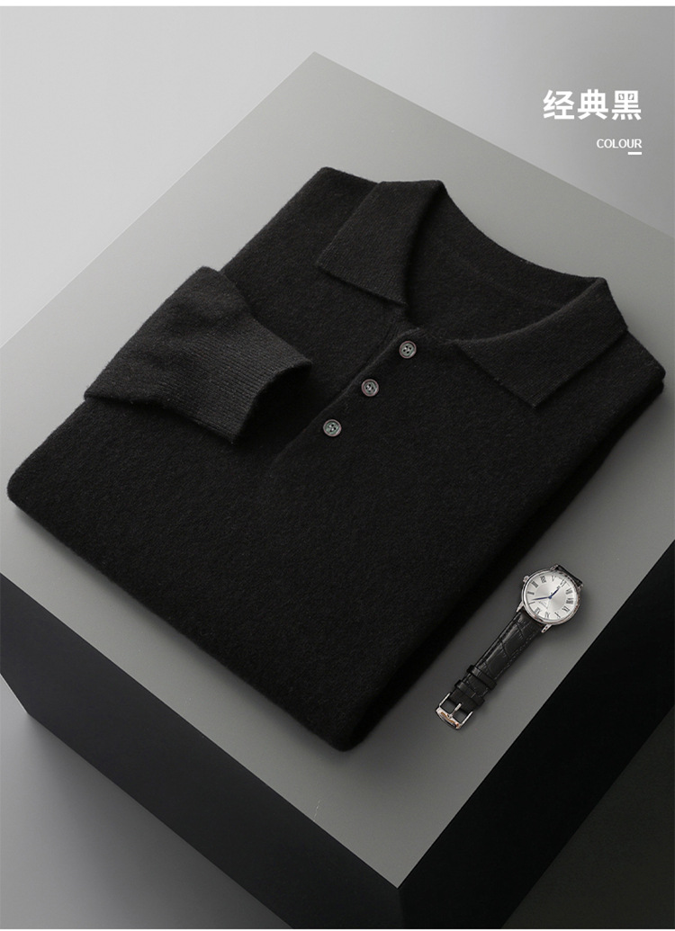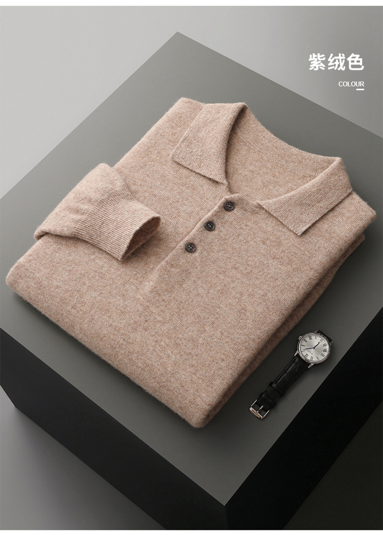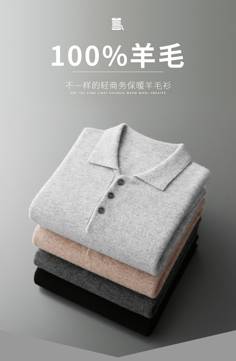 퍼스트 라인 의류 100 순수 모직 스웨터 남성용 POLO 셔츠 칼라 니트 베이스 셔츠 남성용 느슨한 캐주얼베이스 스웨터스토어 가기