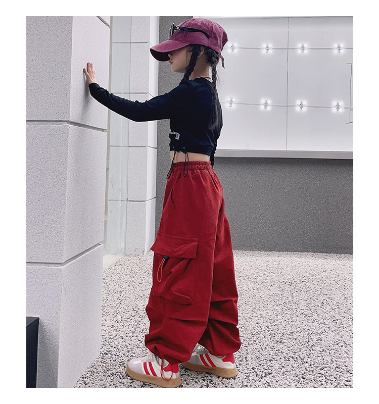 소녀 잡은 바지 봄과 가을 새로운 스타일 중 및 빅 키즈 트렌디 쿨 스트리트 댄스 중 큰 키즈 한국 재즈 스트레이트 바지 유행스토어 가기