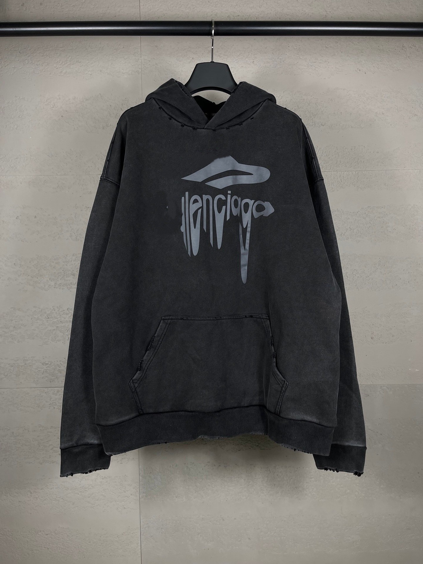 파리 조수 브랜드 B 코크스 자수 불꽃 편지 로고 파괴 인쇄 후드 긴 소매 스웨터의 올바른 버전