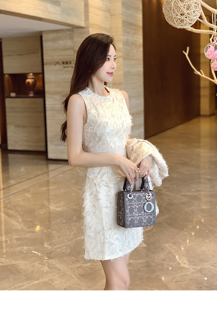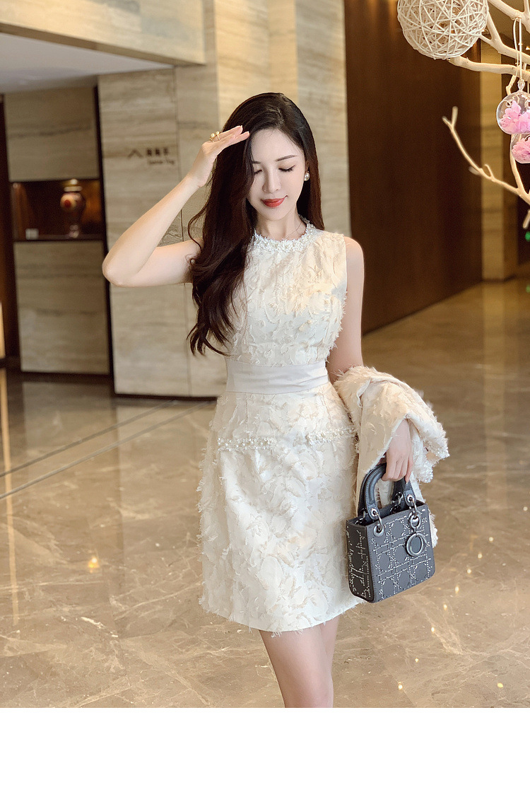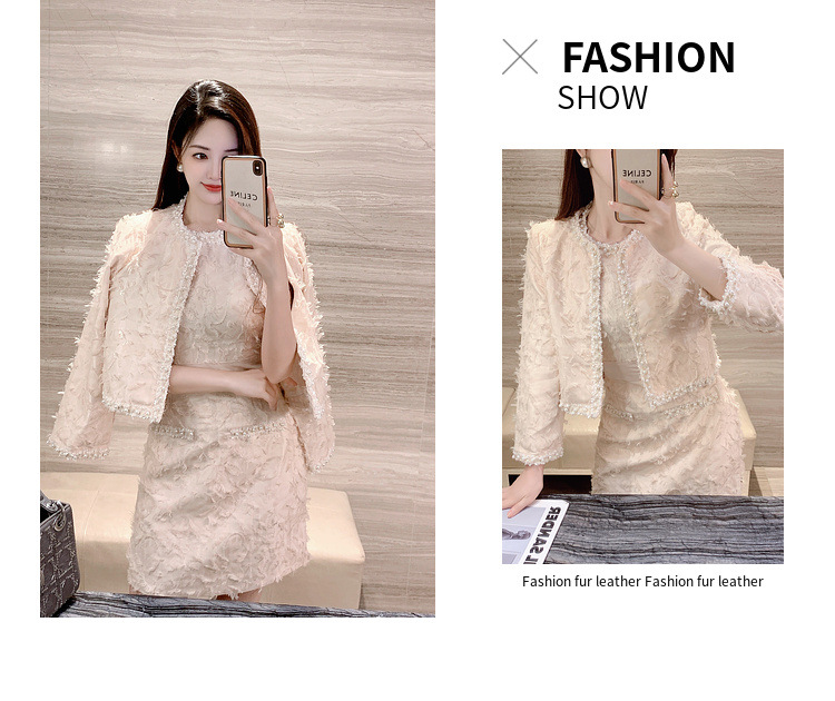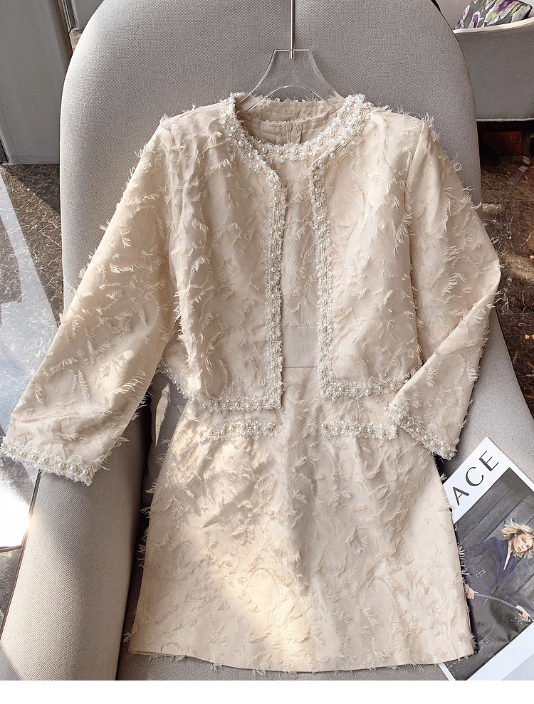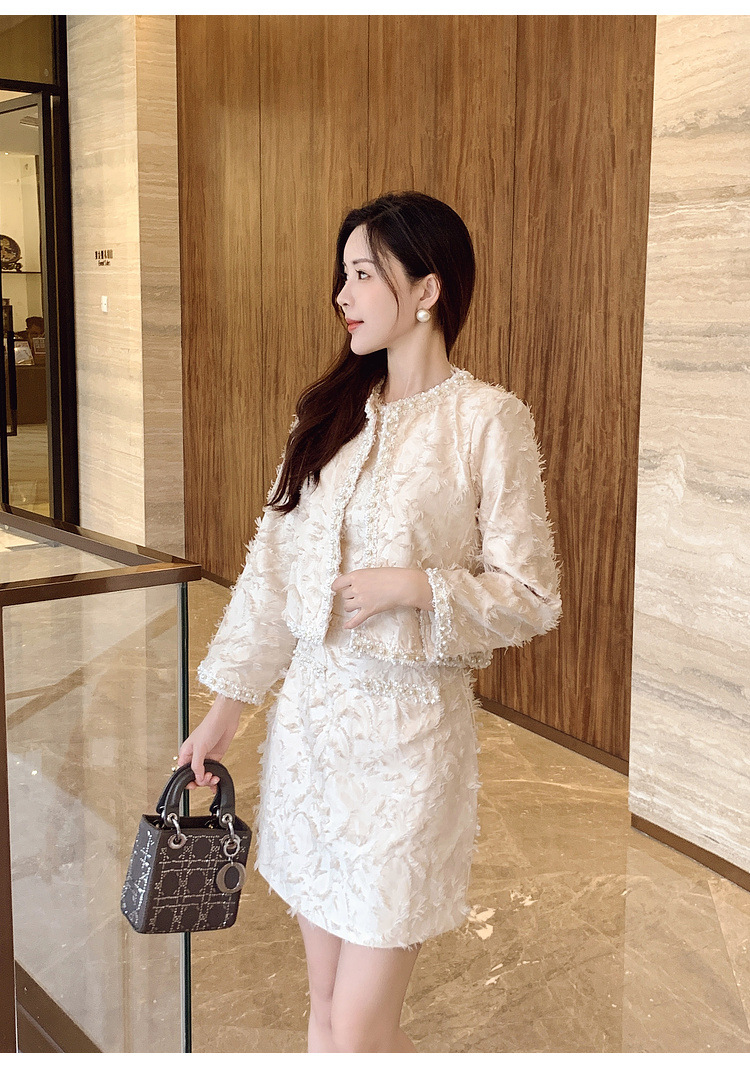 기질 빛 성숙한 연예인 세트 여성의 2024 가을/겨울 중공업 구슬 짧은 재킷 슬림 핏 조끼 스커트 투피스 세트스토어 가기