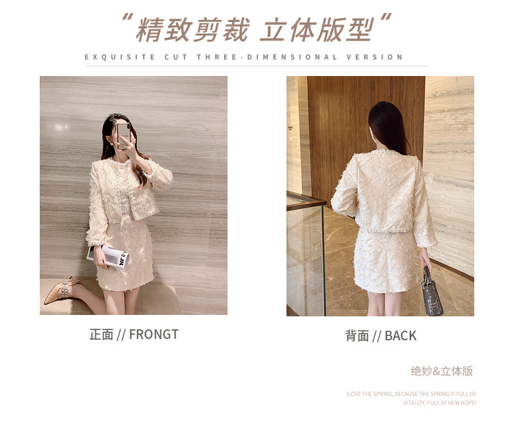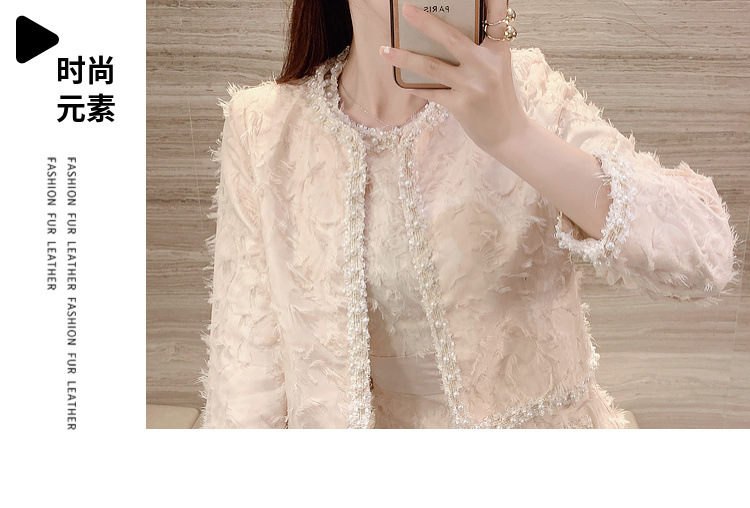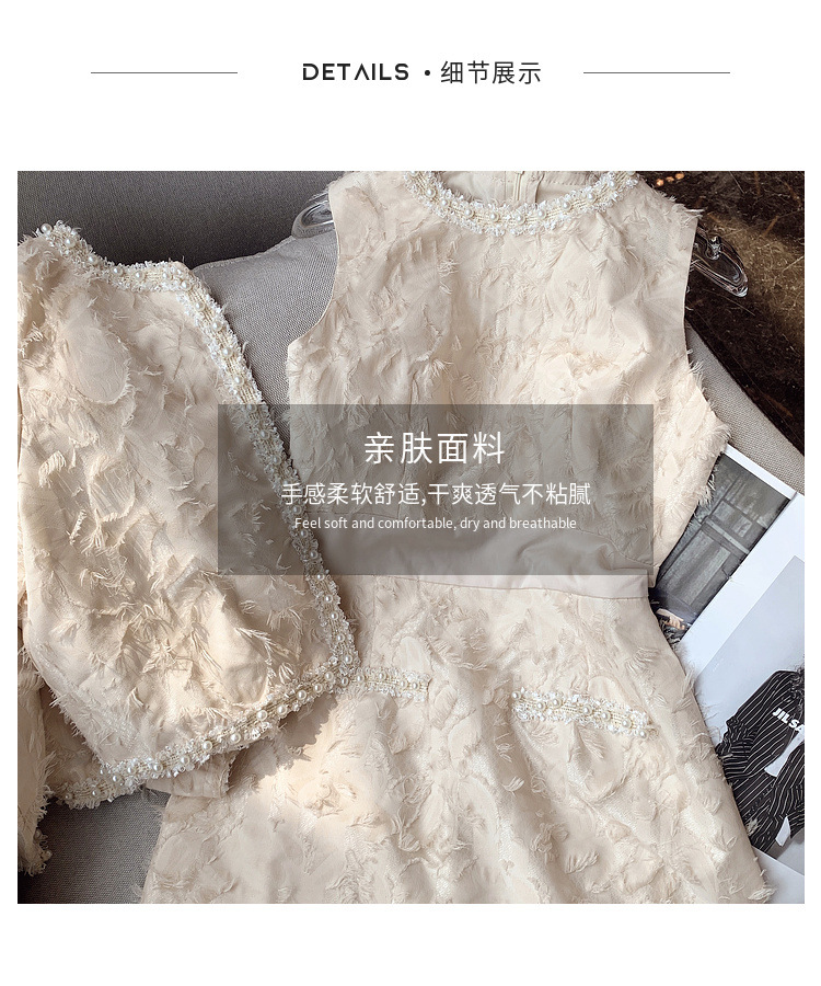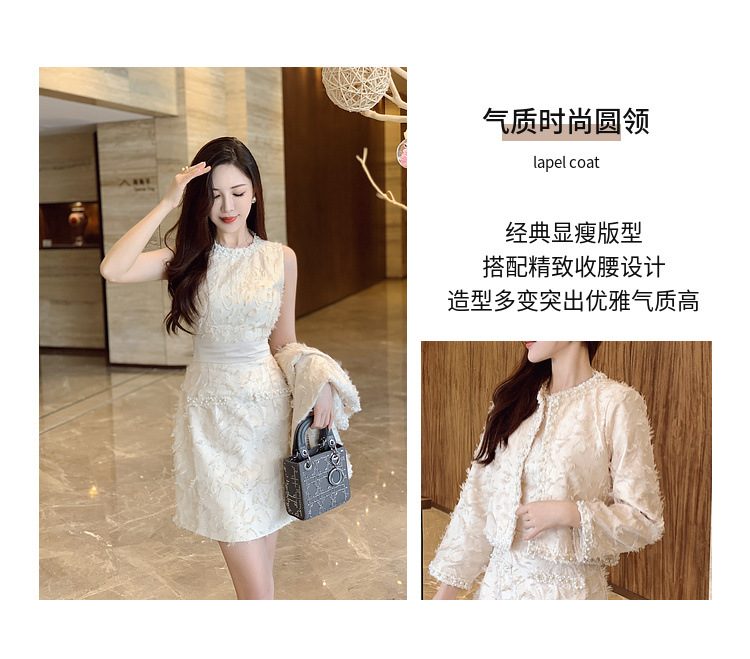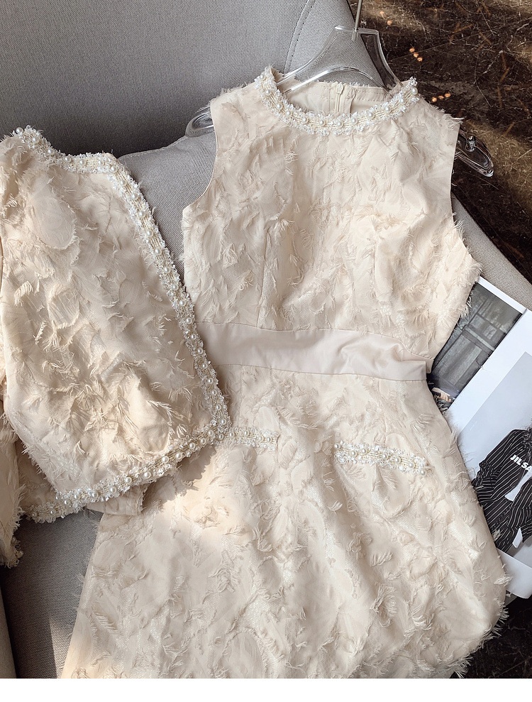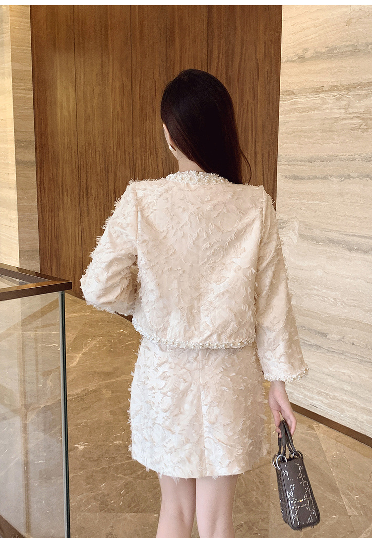 기질 빛 성숙한 연예인 세트 여성의 2024 가을/겨울 중공업 구슬 짧은 재킷 슬림 핏 조끼 스커트 투피스 세트
