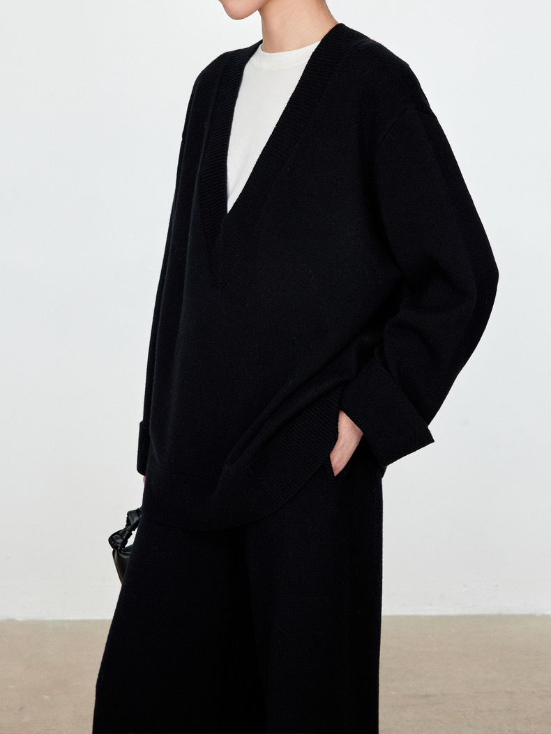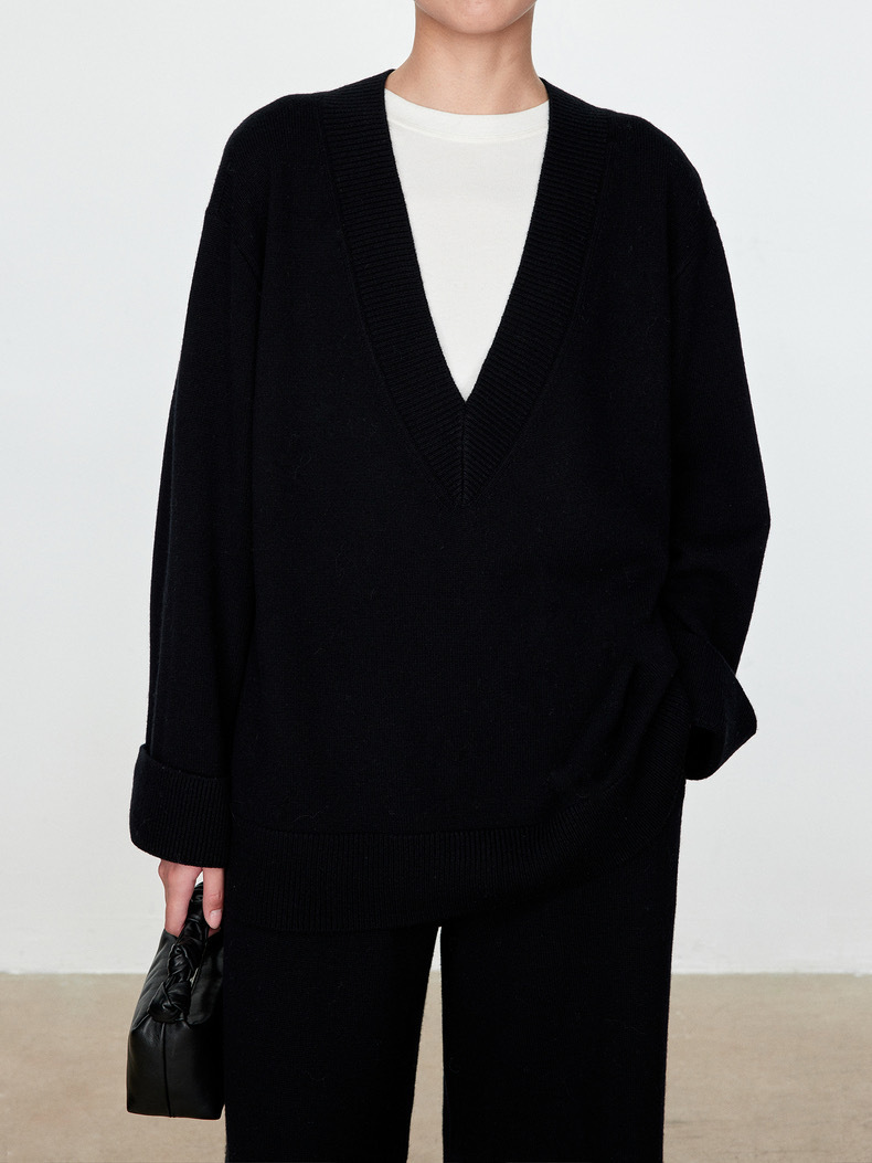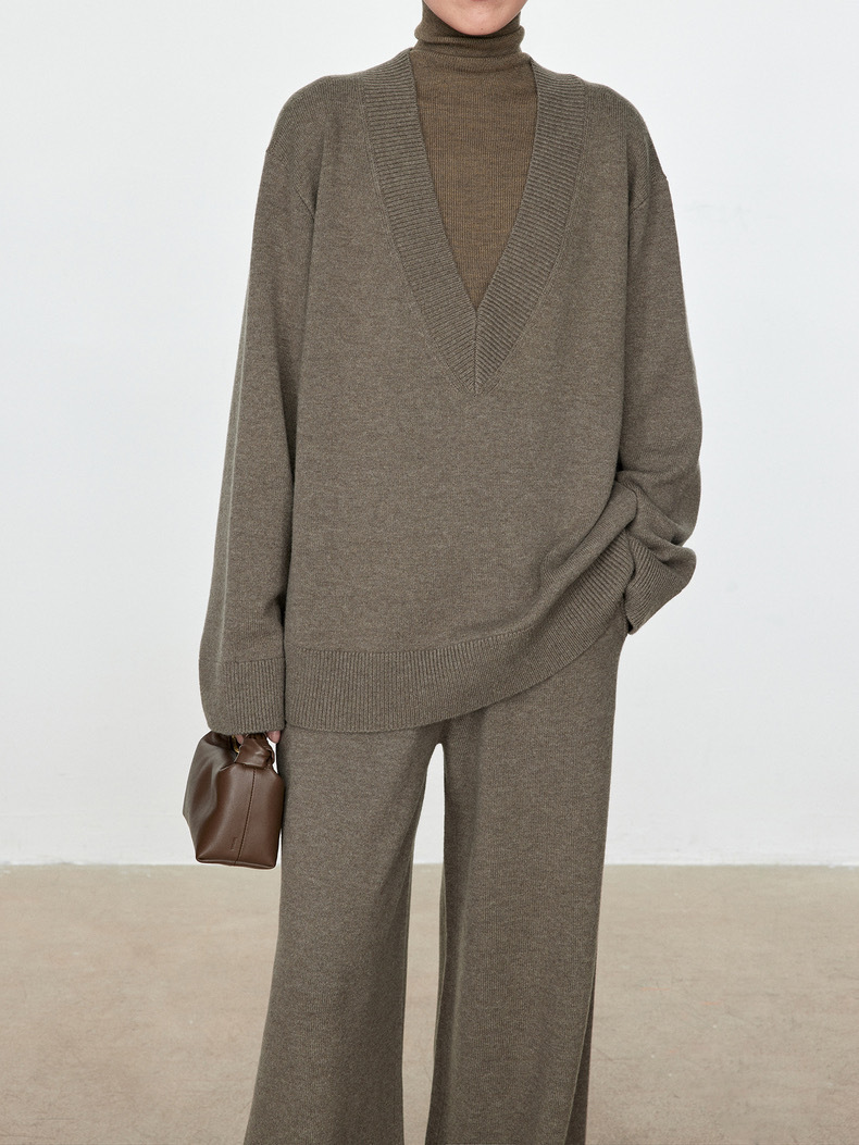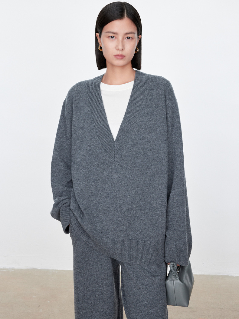 틈새 미니멀리스트 ROW 스타일 2025 가을과 겨울 양모 스웨터 대형 V-넥 탑 게으른 니트 스웨터 그레이 스웨터 여성복스토어 가기