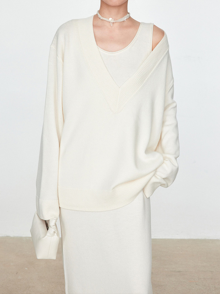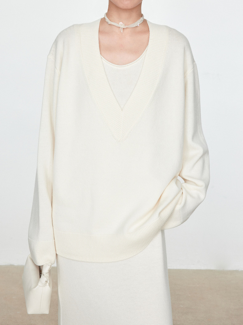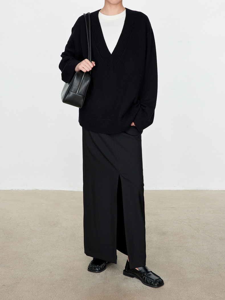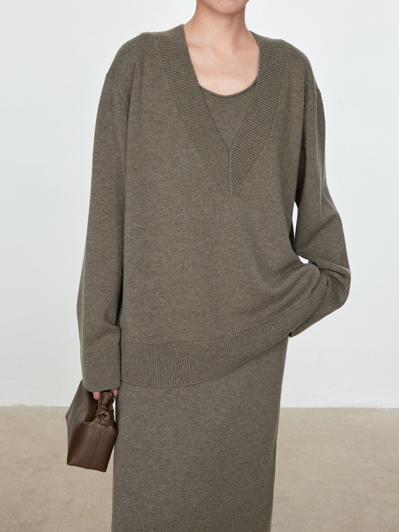 틈새 미니멀리스트 ROW 스타일 2025 가을과 겨울 양모 스웨터 대형 V-넥 탑 게으른 니트 스웨터 그레이 스웨터 여성복스토어 가기