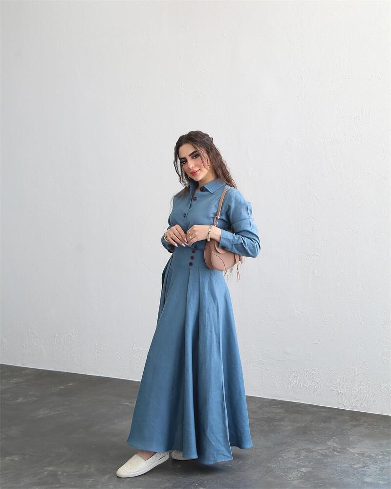 대외 무역 재고 여성의 2024 가을 새로운 린넨 패션 단색 느슨한 긴 소매 셔츠 스커트 투피스 세트스토어 가기