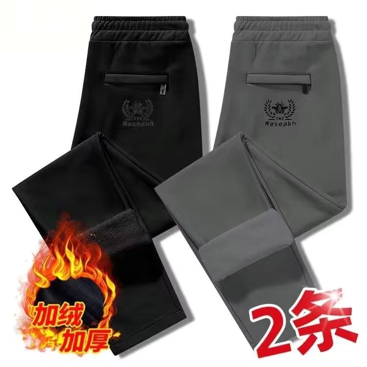가을과 겨울 남자 기모 두꺼운 캐주얼 긴 바지 남자 느슨한 플러스 사이즈 스포츠 바지 스트레치 스트레이트 바지 남자 운동복스토어 가기