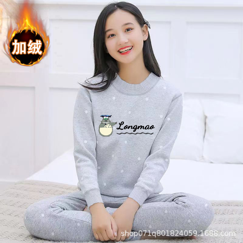 가을과 겨울 기모 가을 옷 가을 바지 여학생 소녀 큰 아이들 중학생 만화 간단한 열 속옷 세트스토어 가기
