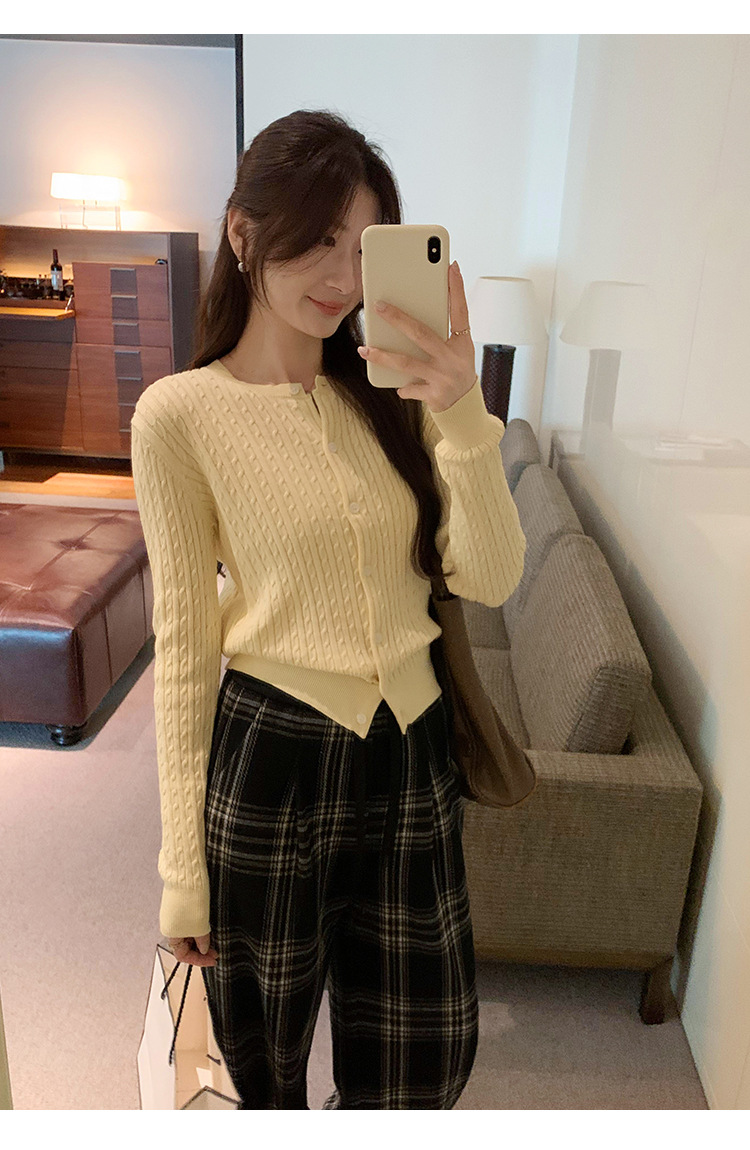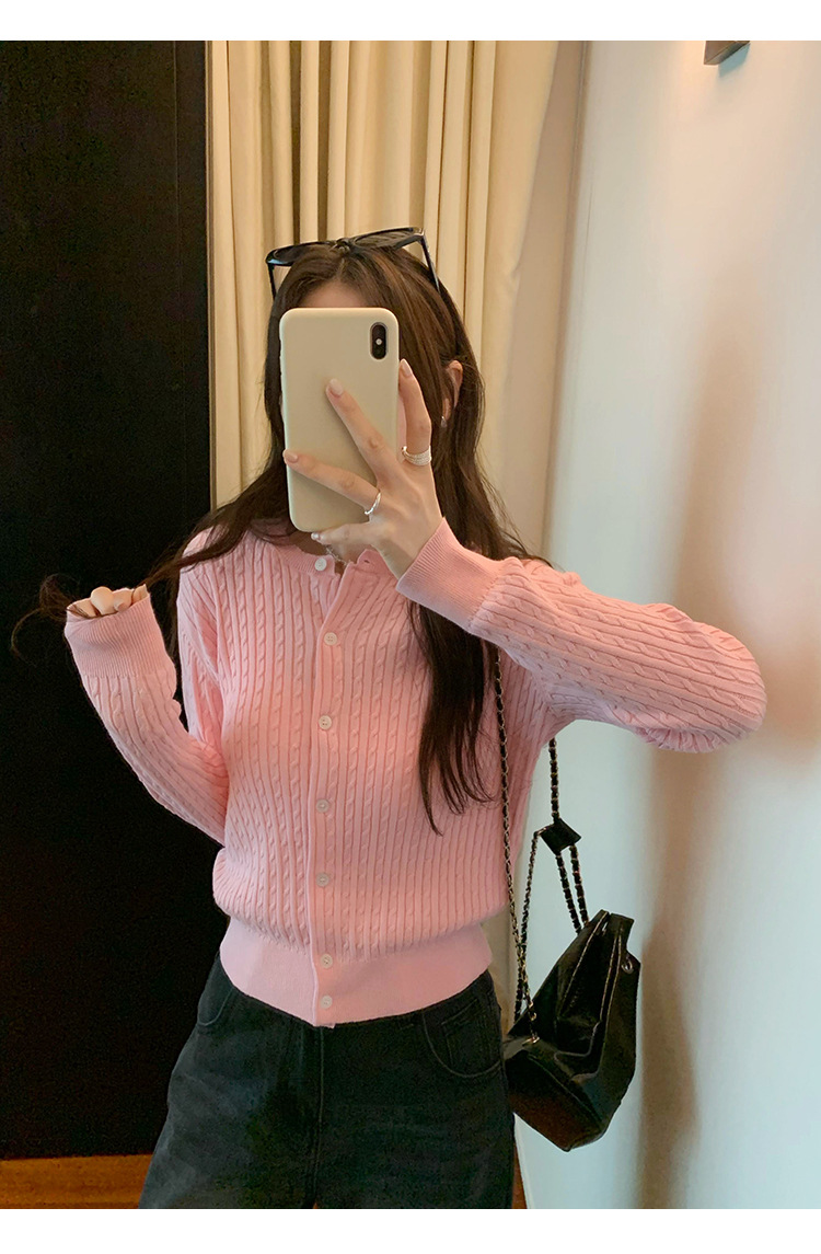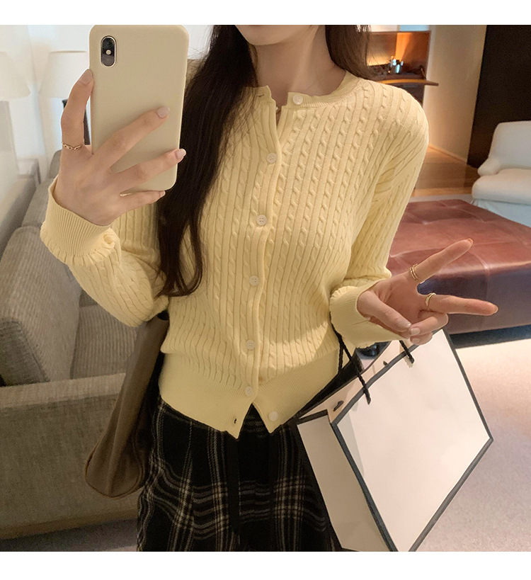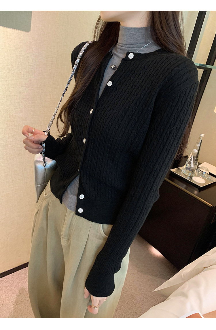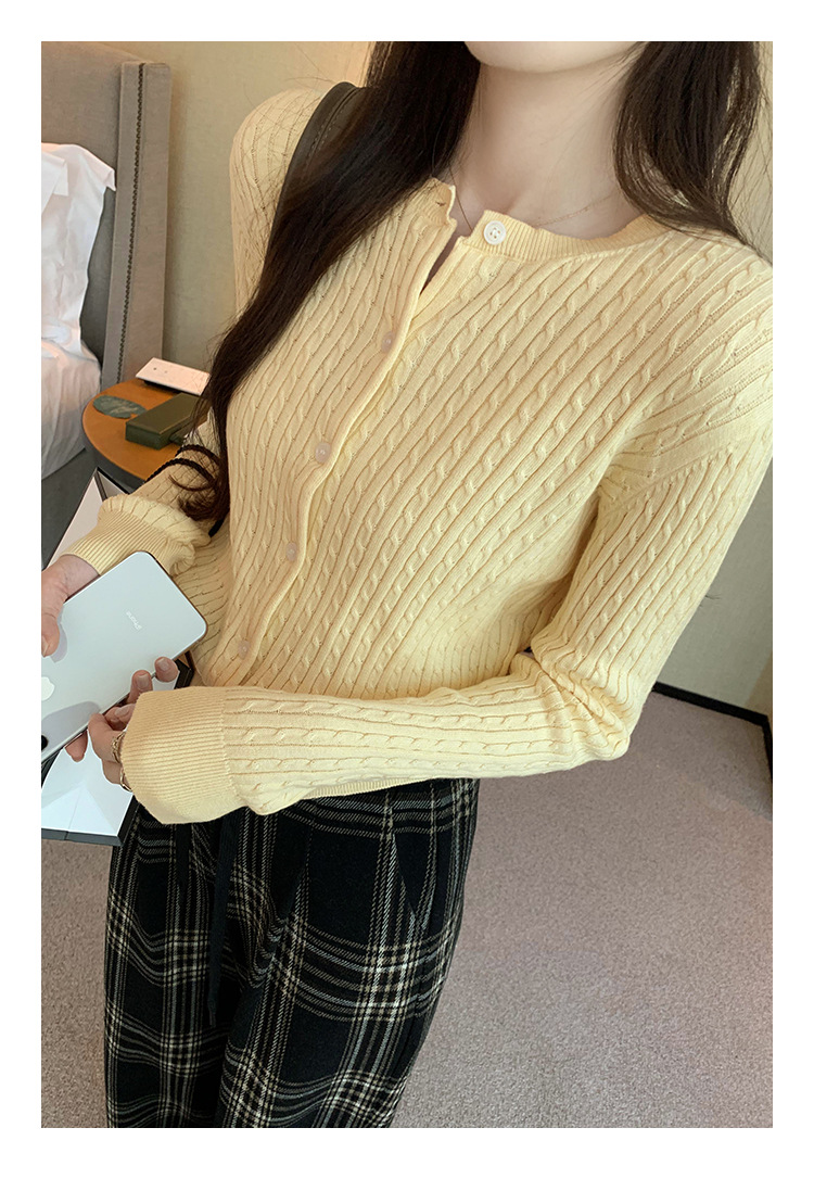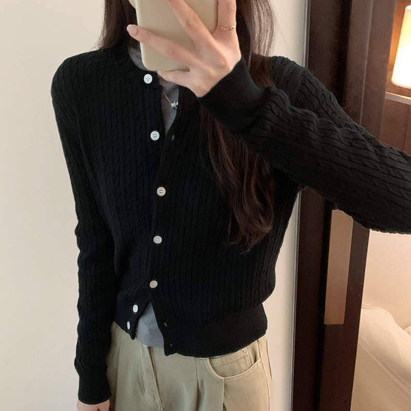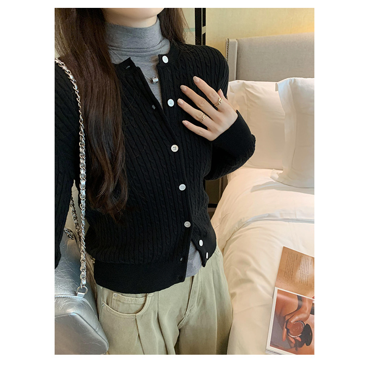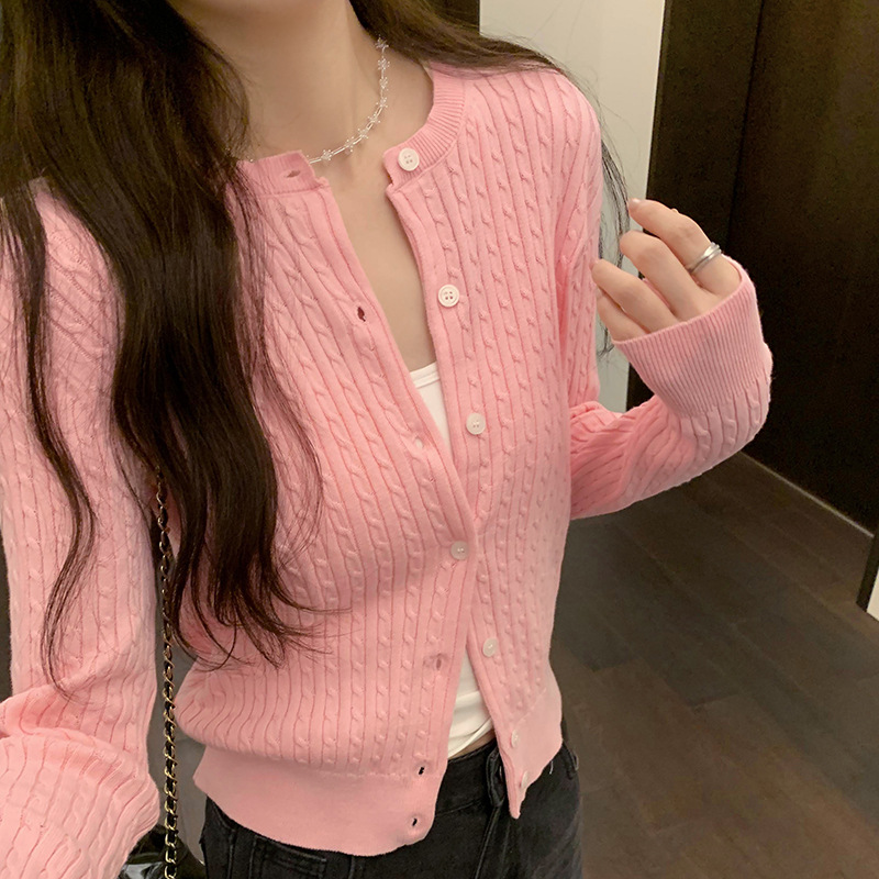 트위스트 라운드 넥 롱 슬리브 니트 카디건 여자 2024 가을 및 겨울 새로운 한국 스타일 우아한 슬림 핏 슬리밍 올 매치 탑스토어 가기