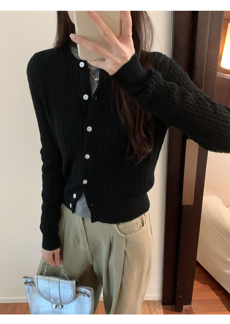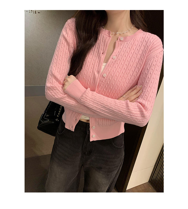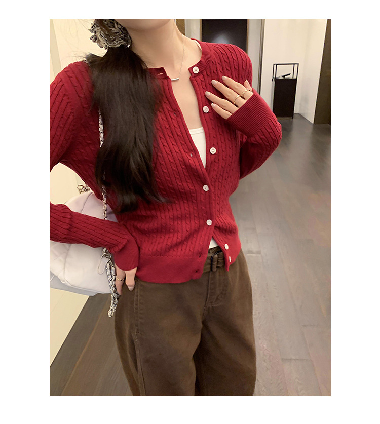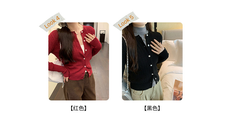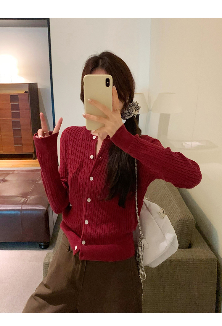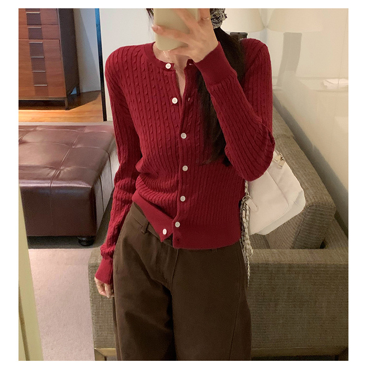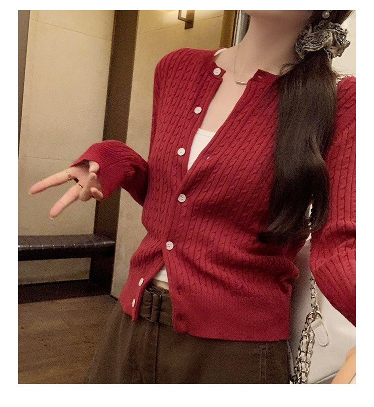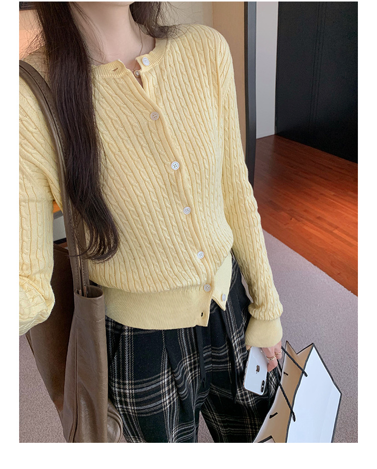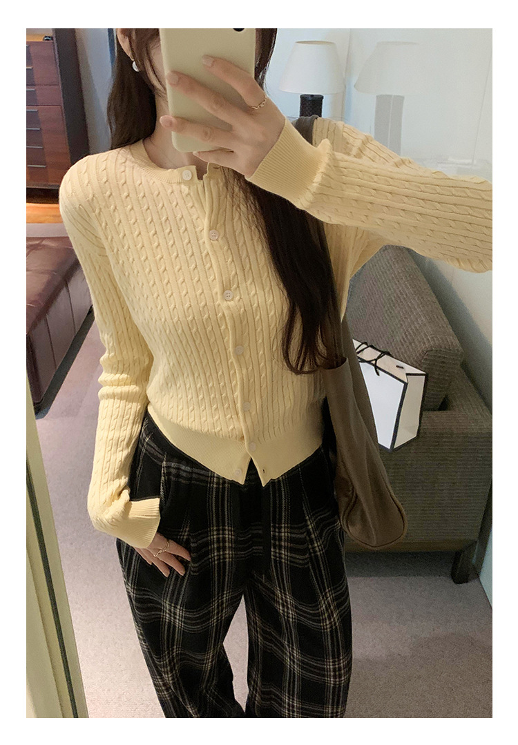 트위스트 라운드 넥 롱 슬리브 니트 카디건 여자 2024 가을 및 겨울 새로운 한국 스타일 우아한 슬림 핏 슬리밍 올 매치 탑스토어 가기