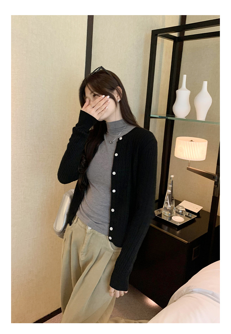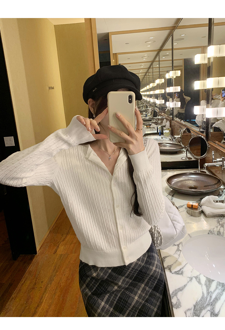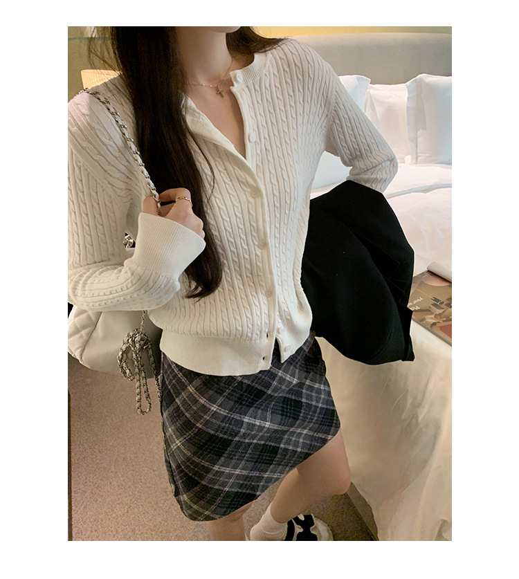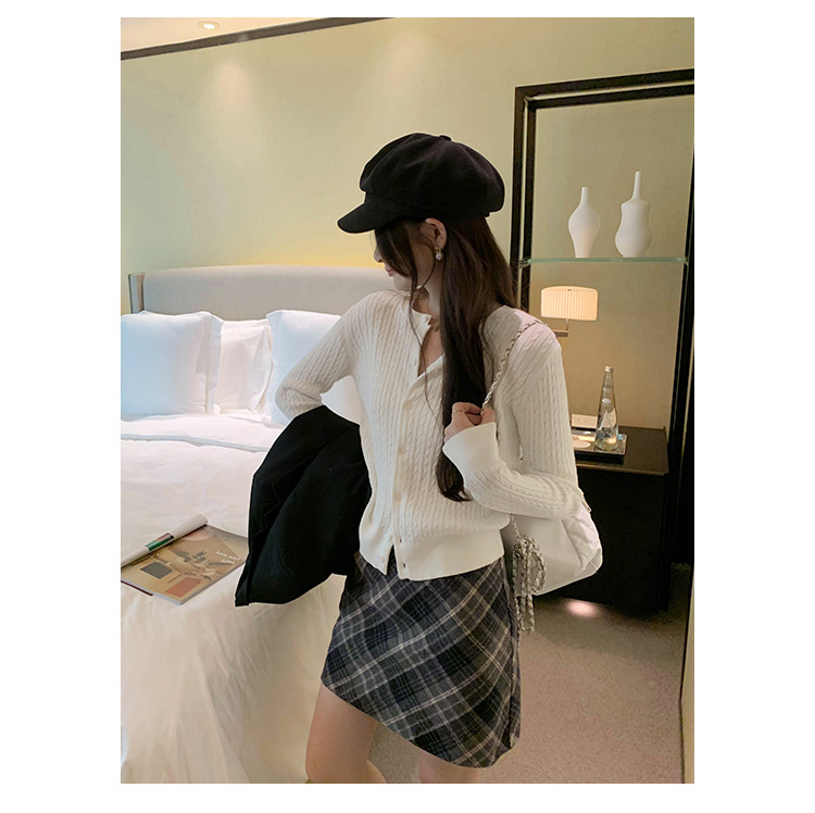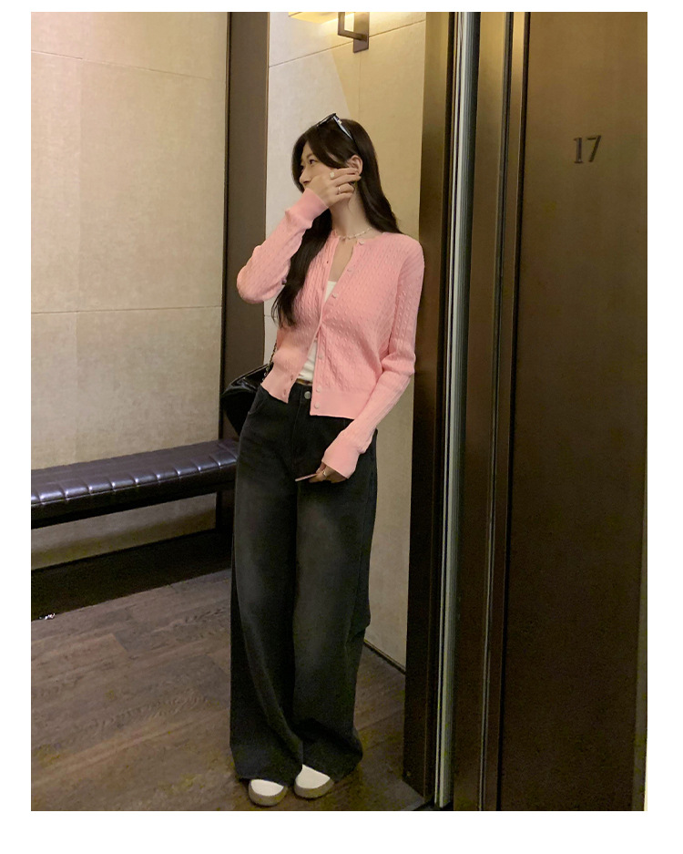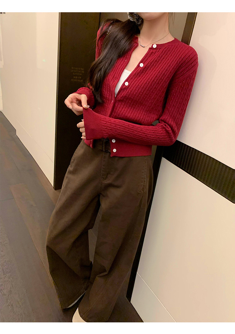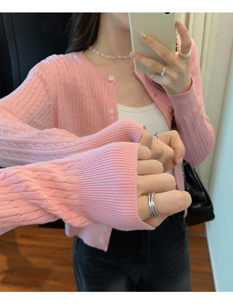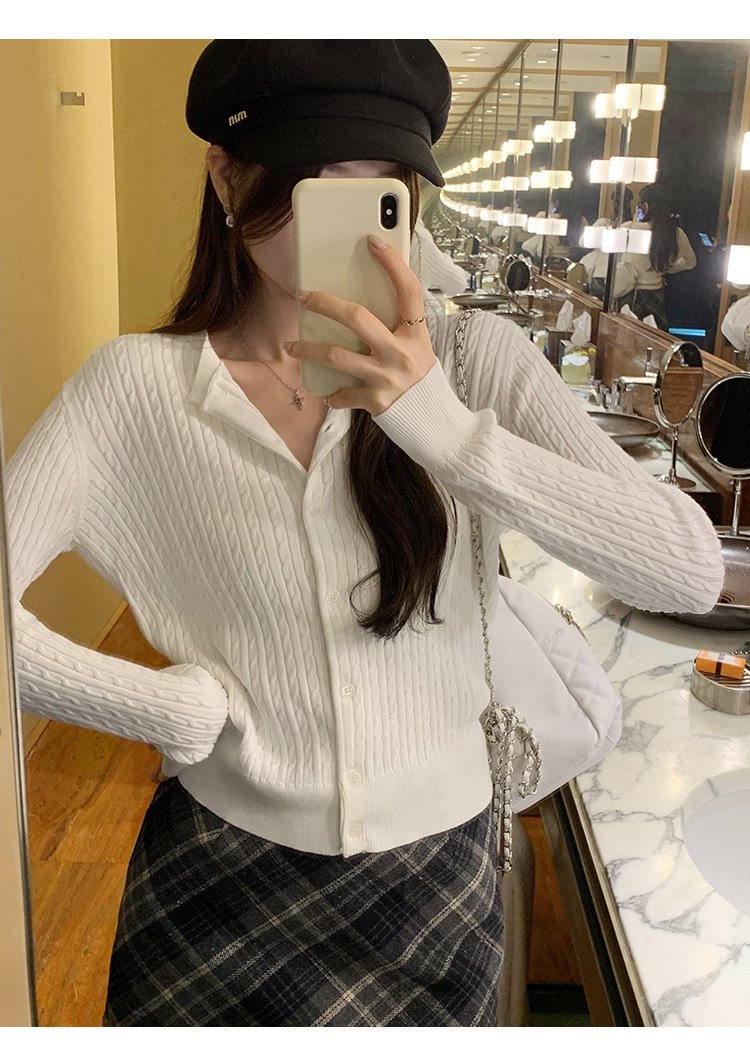 트위스트 라운드 넥 롱 슬리브 니트 카디건 여자 2024 가을 및 겨울 새로운 한국 스타일 우아한 슬림 핏 슬리밍 올 매치 탑스토어 가기
