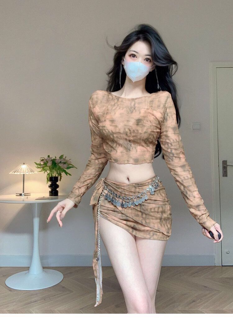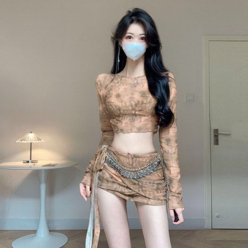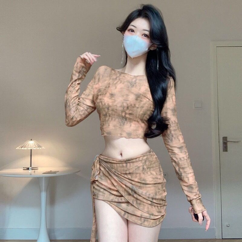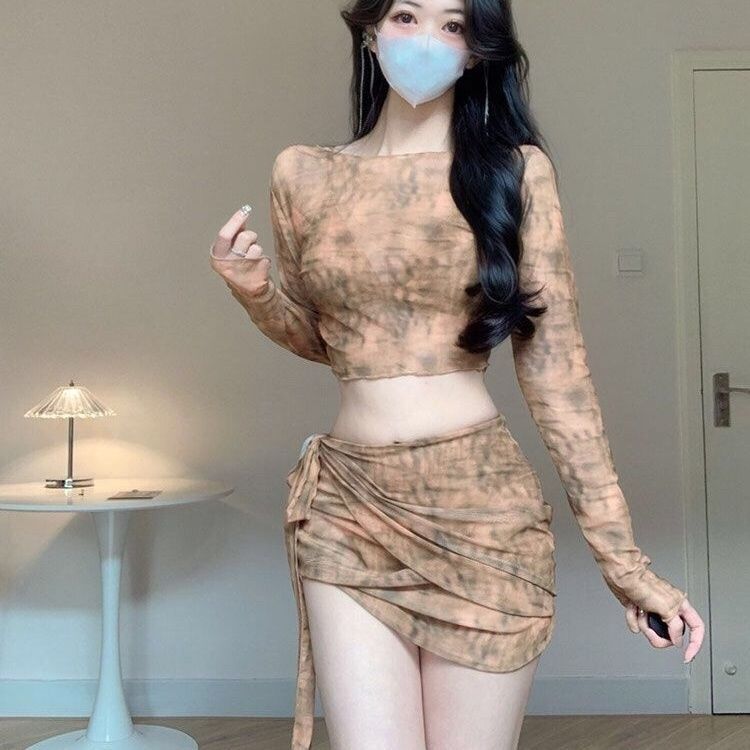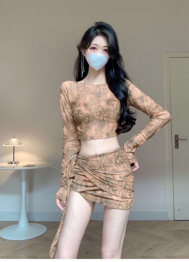 황무지 수영복 여성 2024 새 스플릿 비키니 긴팔 4 피스 세트 학생 휴가 온천 수영복스토어 가기