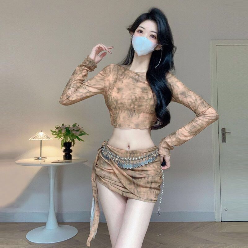 황무지 수영복 여성 2024 새 스플릿 비키니 긴팔 4 피스 세트 학생 휴가 온천 수영복