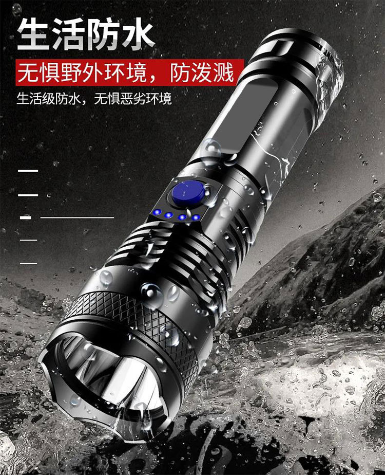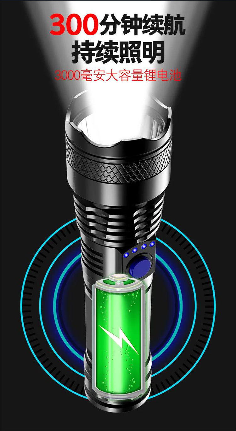 국경 간 폭발 ABS 밝은 LED 손전등 USB 충전 디스플레이 야외 홈 휴대용 야간 낚시 캠핑 손전등스토어 가기