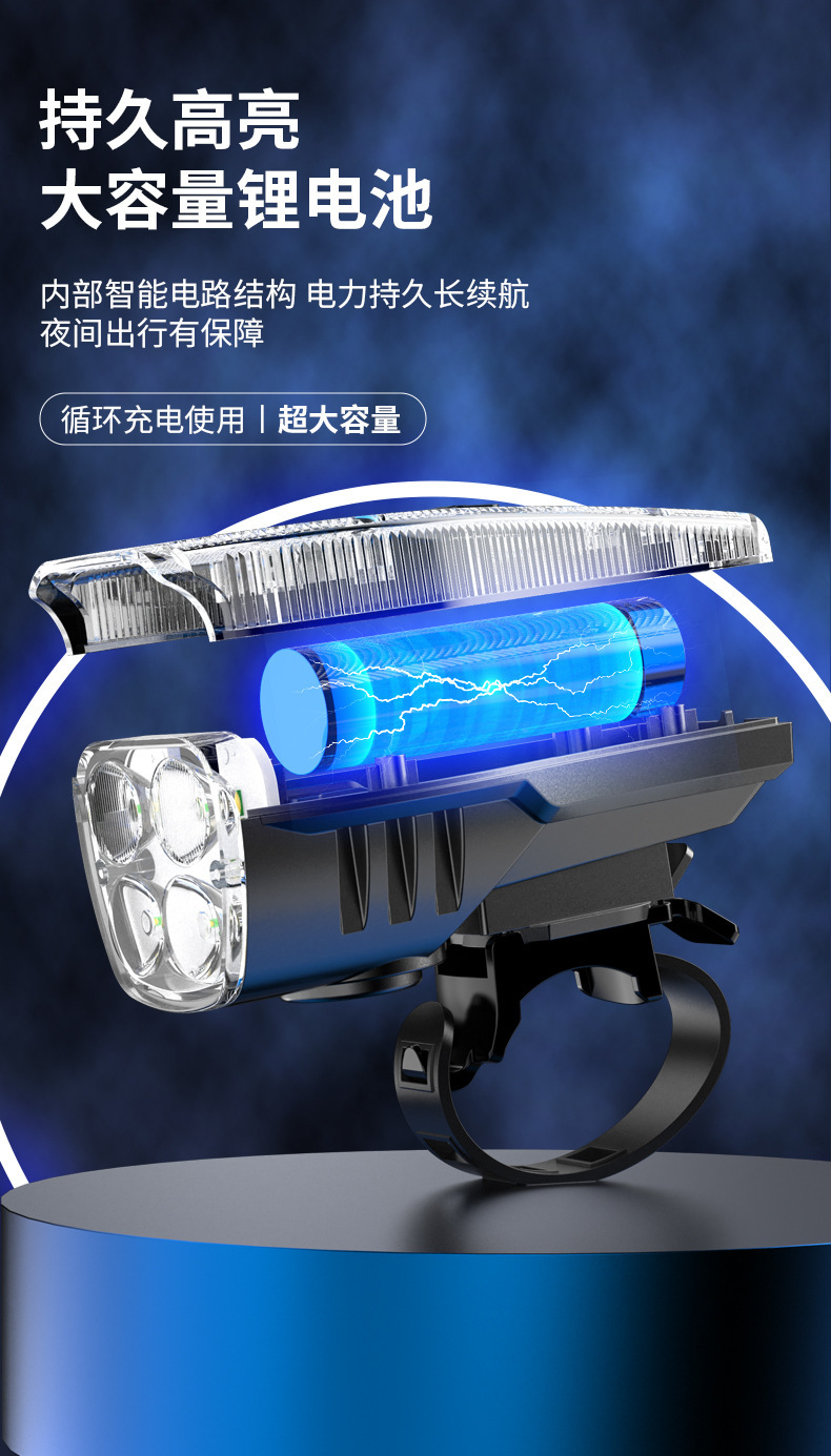 새로운 자전거 라이트 야외 승마 무선 경적 투명 4 램프 디지털 디스플레이 자전거 헤드라이트 액세서리