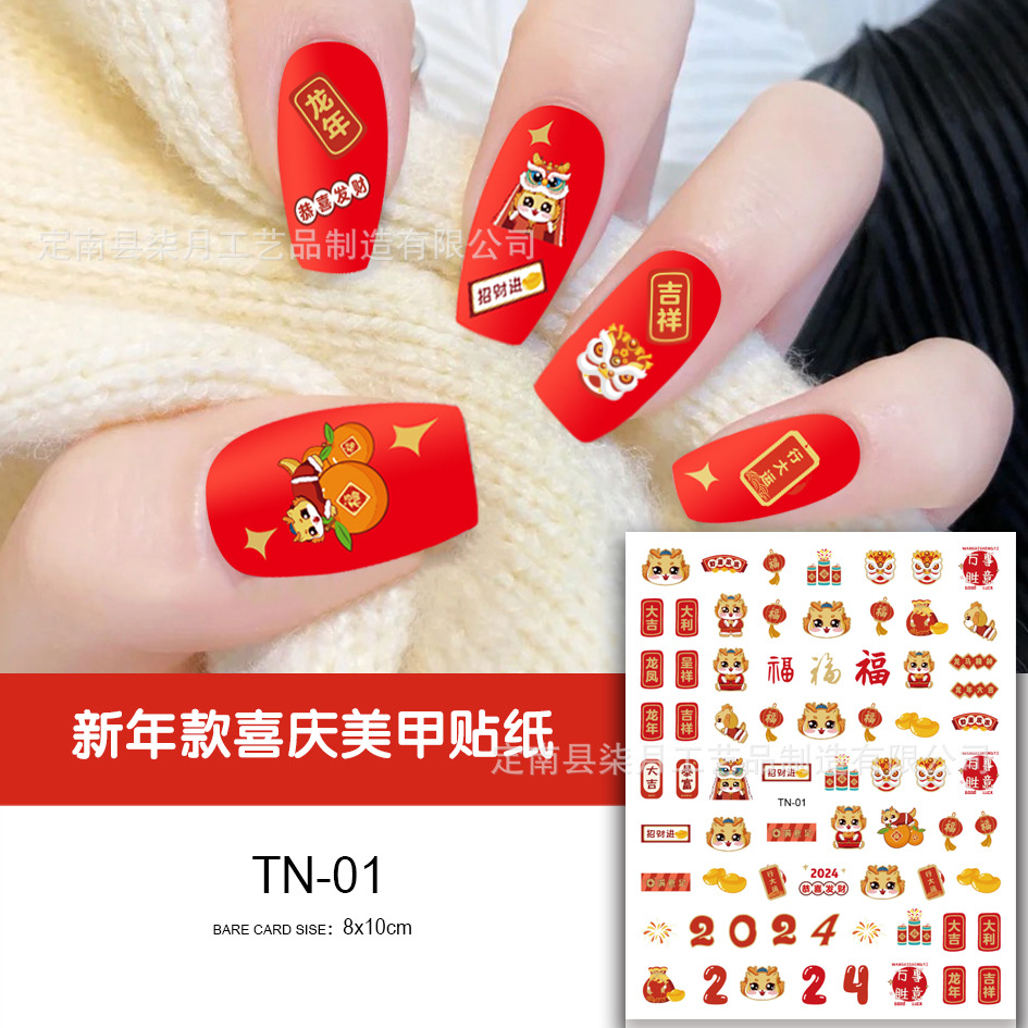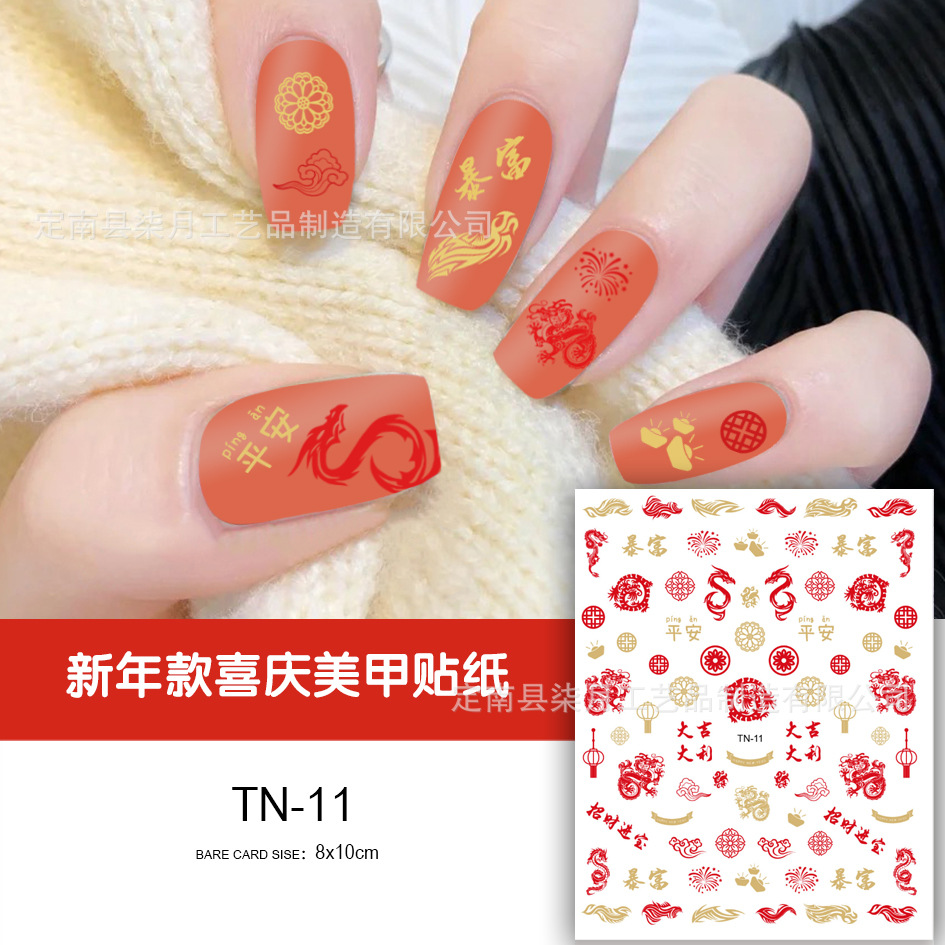 2026년 신년 네일 아트 스티커 빨간색 축제적 행운과 부를 불러오는 네일 스티커 행운과 길조 장식 스티커