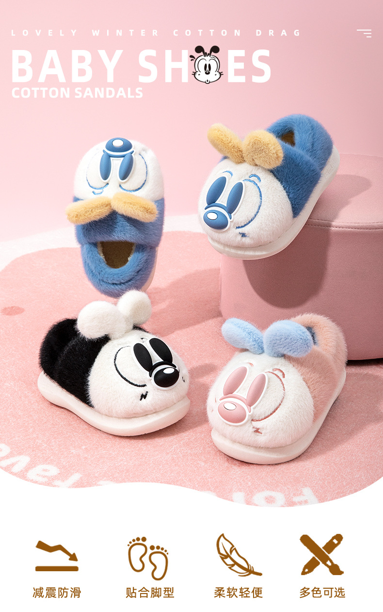 Babu Bean 어린이 면화 소년 겨울 실내 및 실외 착용 면화 슬리퍼 소녀 미끄럼 방지 기모 마오 마오 신발스토어 가기