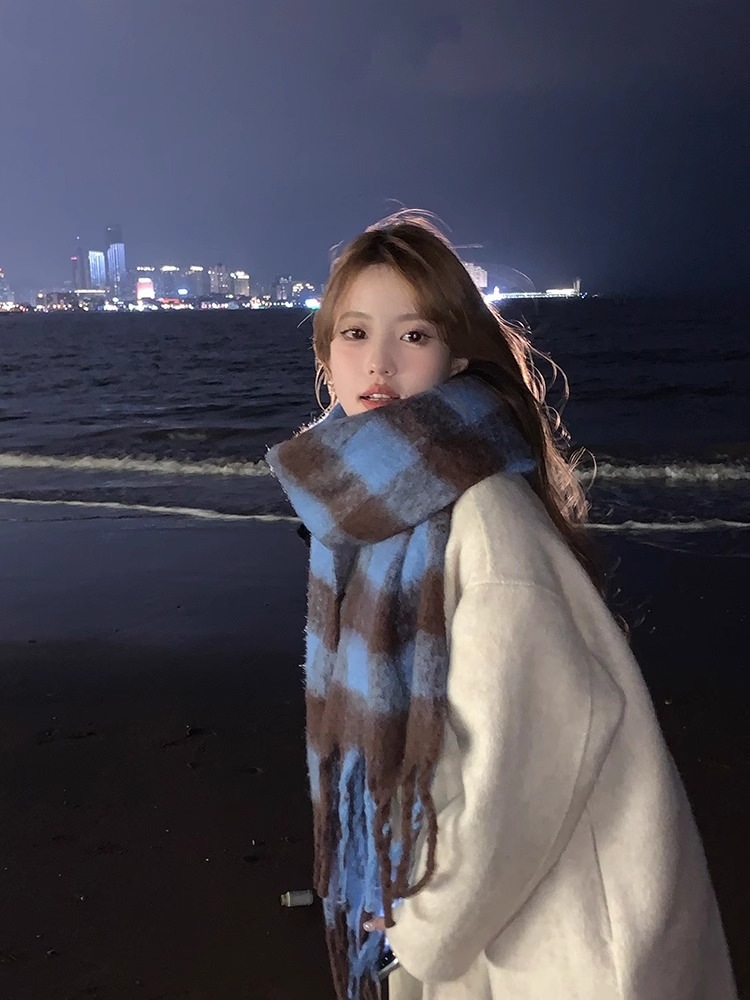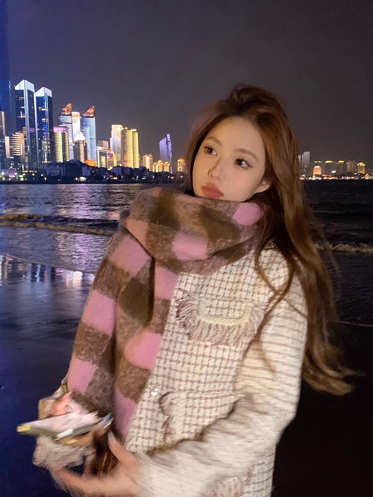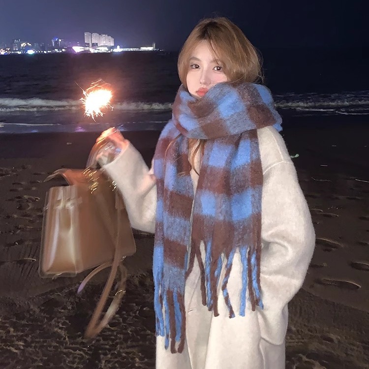 2024 가을 겨울 격자 무늬 스카프 여성 한국 빈티지 목도리 일본 학생 캐시미어 따뜻한 술 스카프 남성 패션스토어 가기