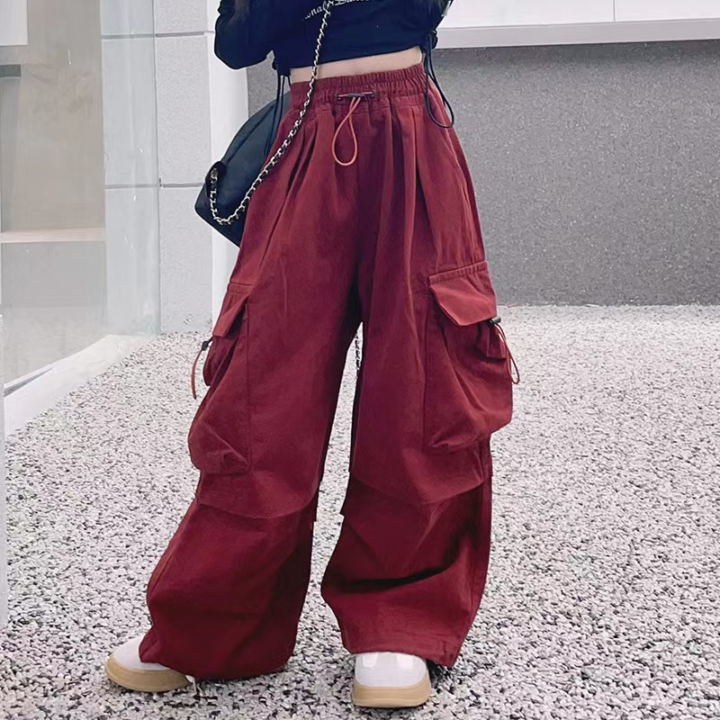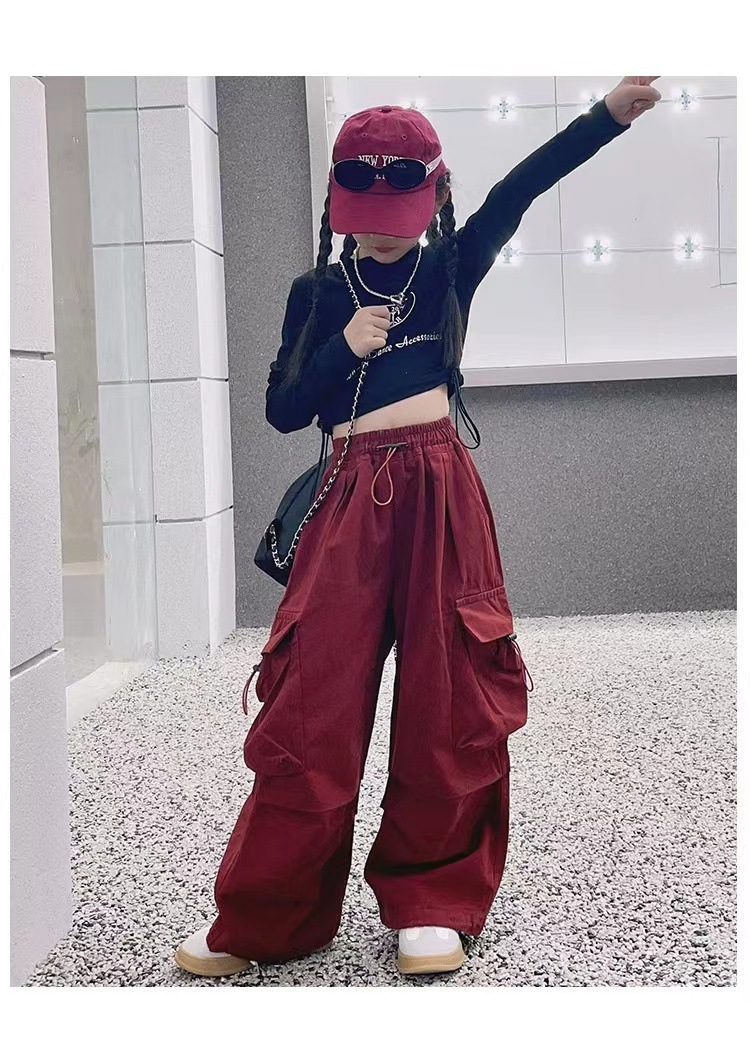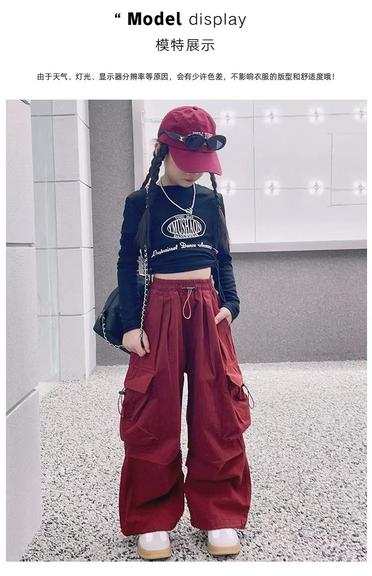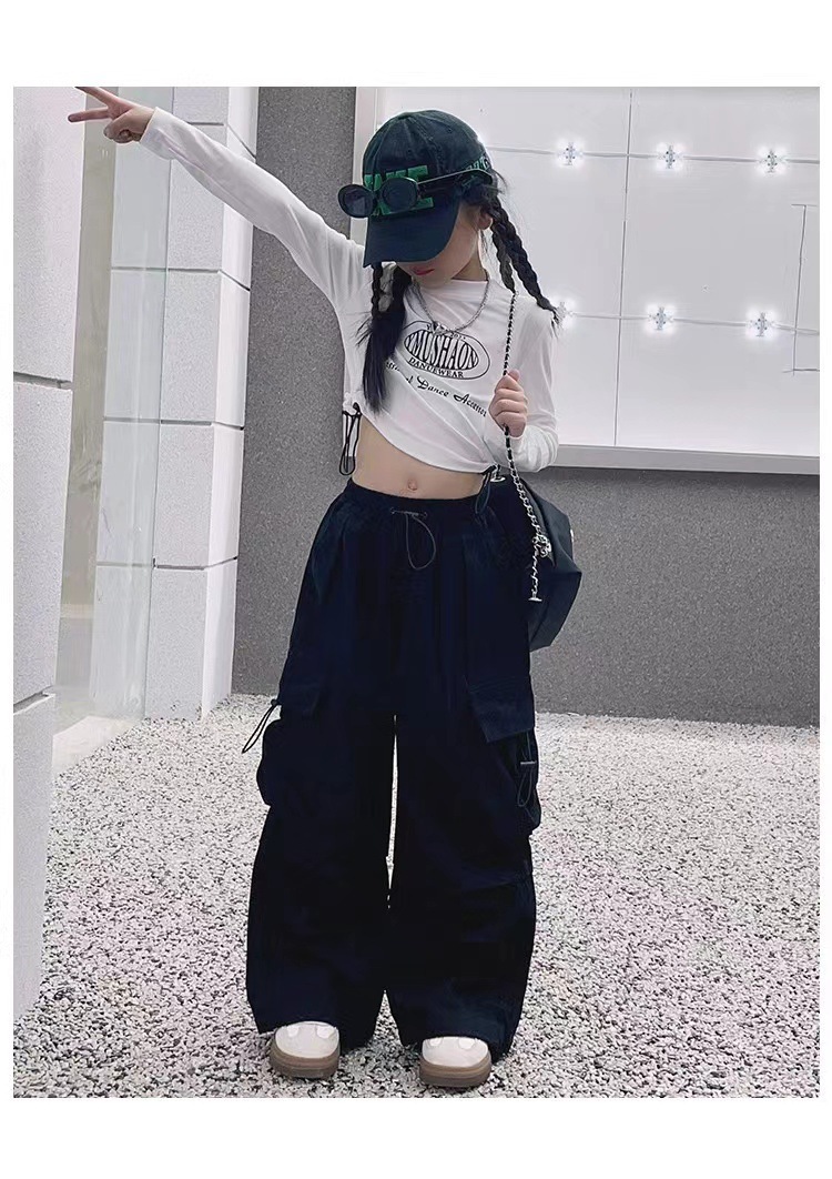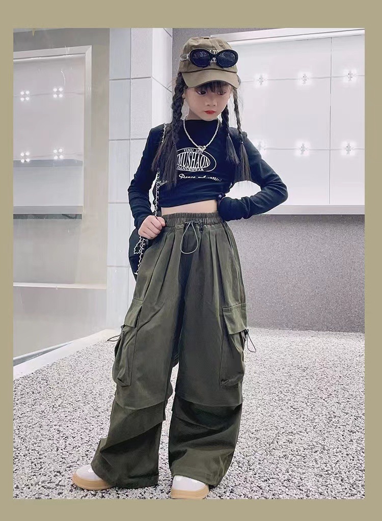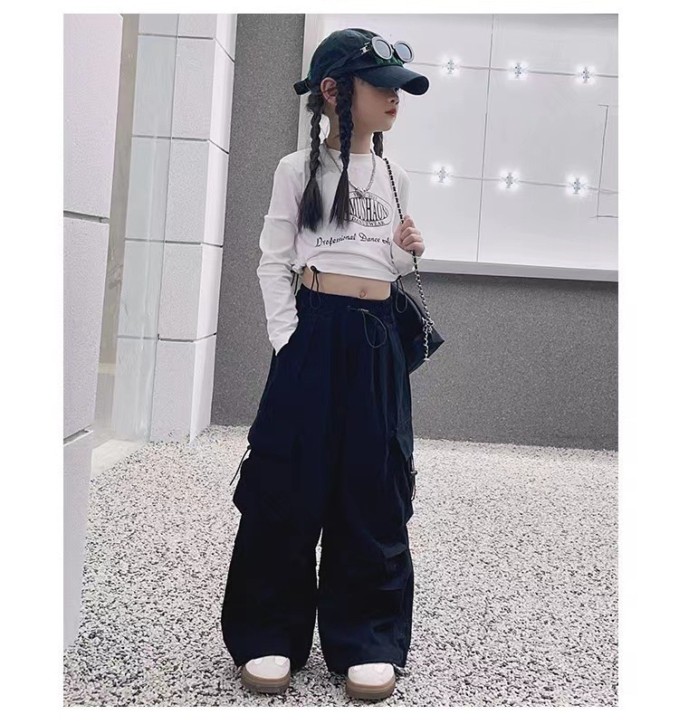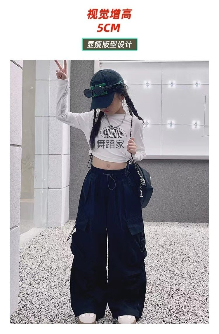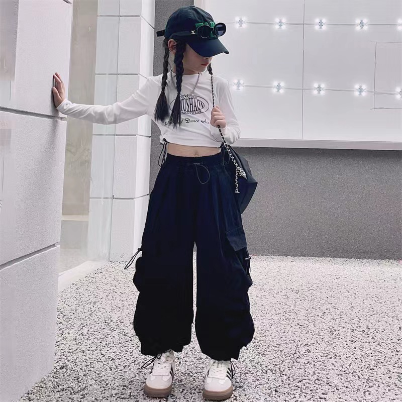 소녀 바지 크레인 바지 힙합 새로운 봄과 가을 큰 소년 2024 어린이 유행 재즈 댄스 의류 소녀 바지스토어 가기