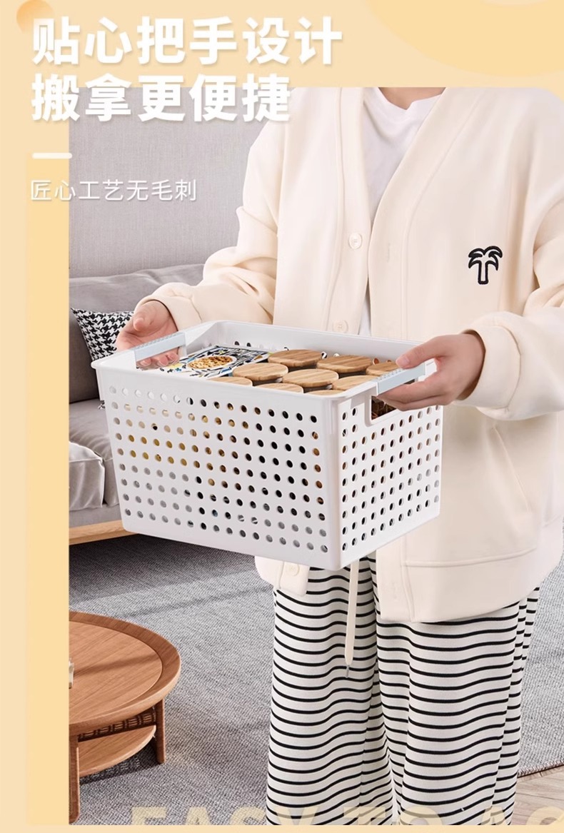 휴대용 대용량 저장 상자 데스크탑 침실 주방 간식 및 음료 저장 상자 다목적 중공 저장 바구니