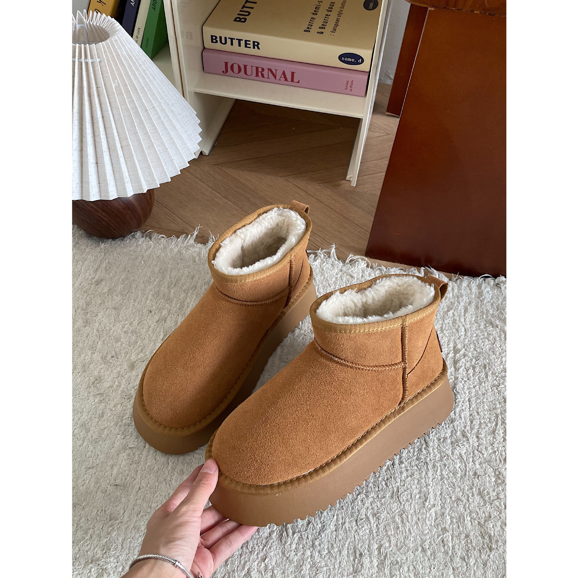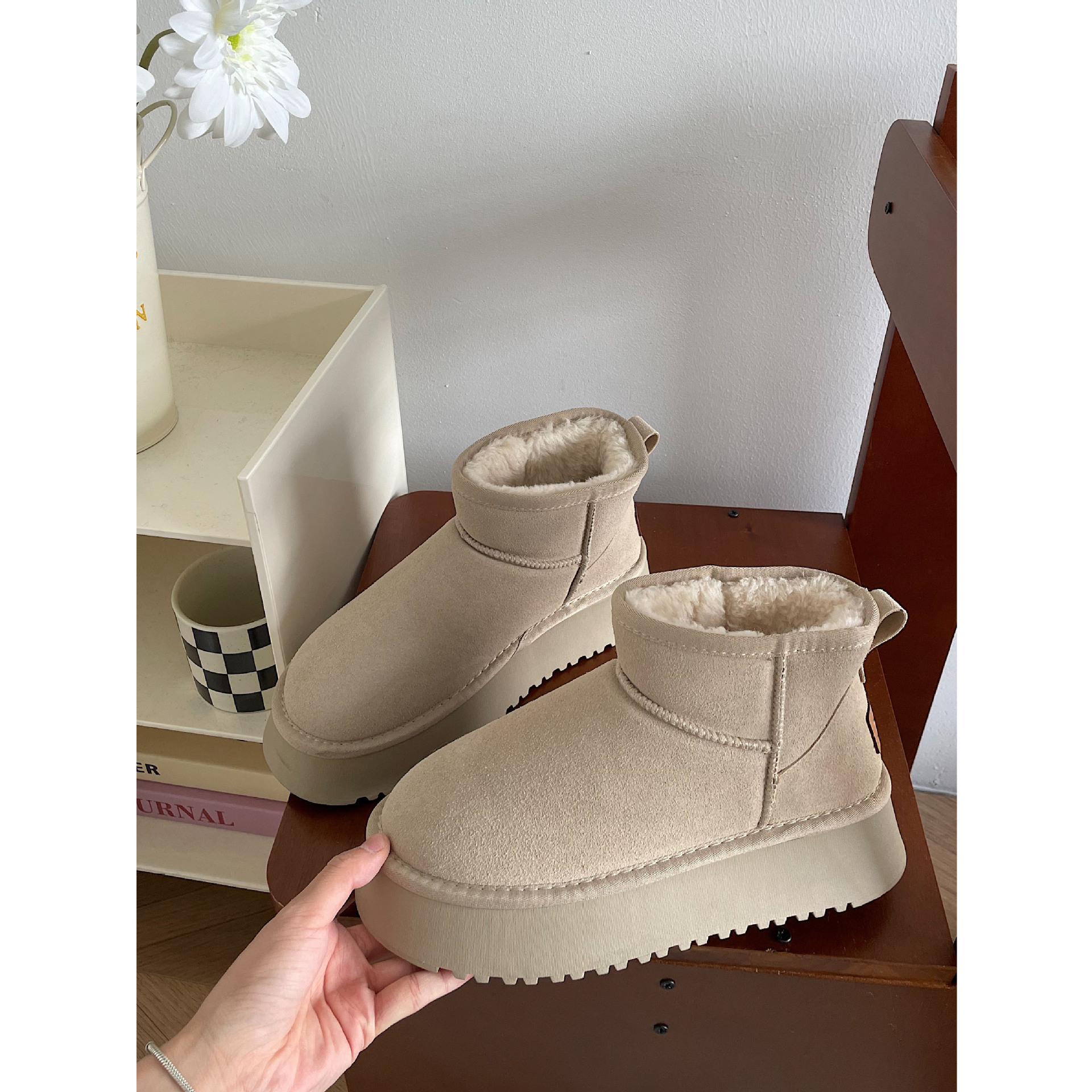기모 스노우 부츠 여성 두꺼운 바닥 2024 겨울 새로운 모피 하나의 짧은 부츠 패딩 미끄럼 방지 코튼 신발 착용