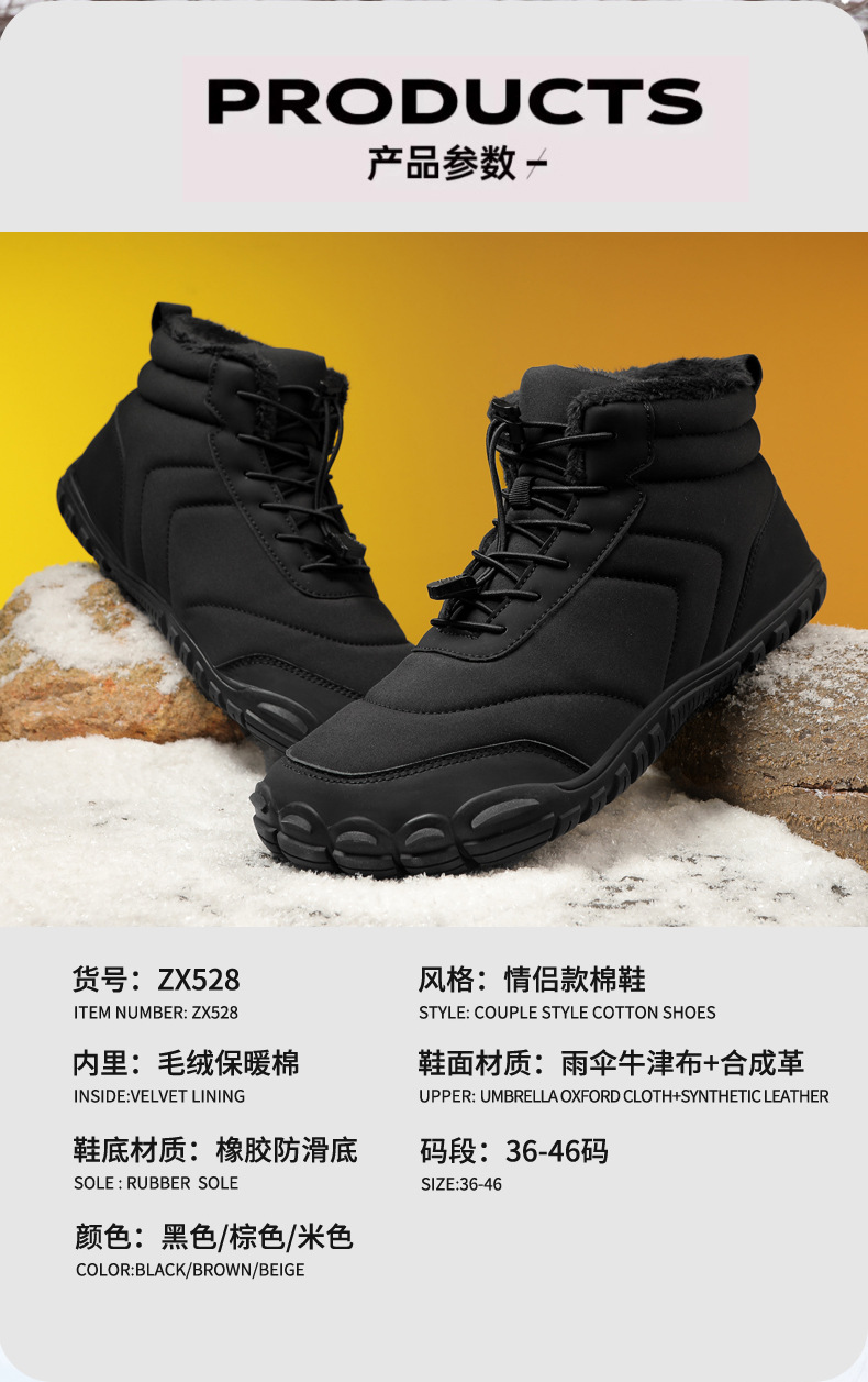 도매 남성과 여성의 기모 두꺼운 스노우 부츠 간단한 홈 더러운 코튼 신발 야외 레저 하이킹 커플의 다섯 손가락 신발스토어 가기