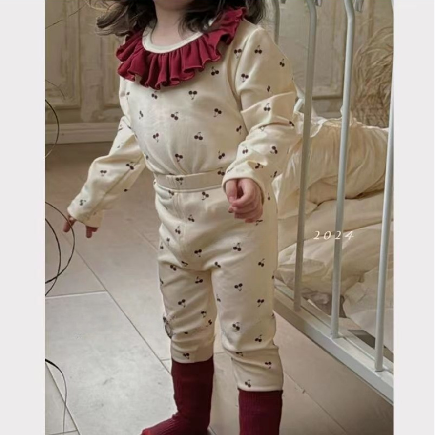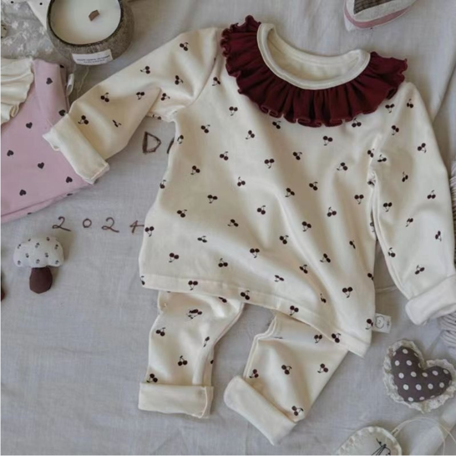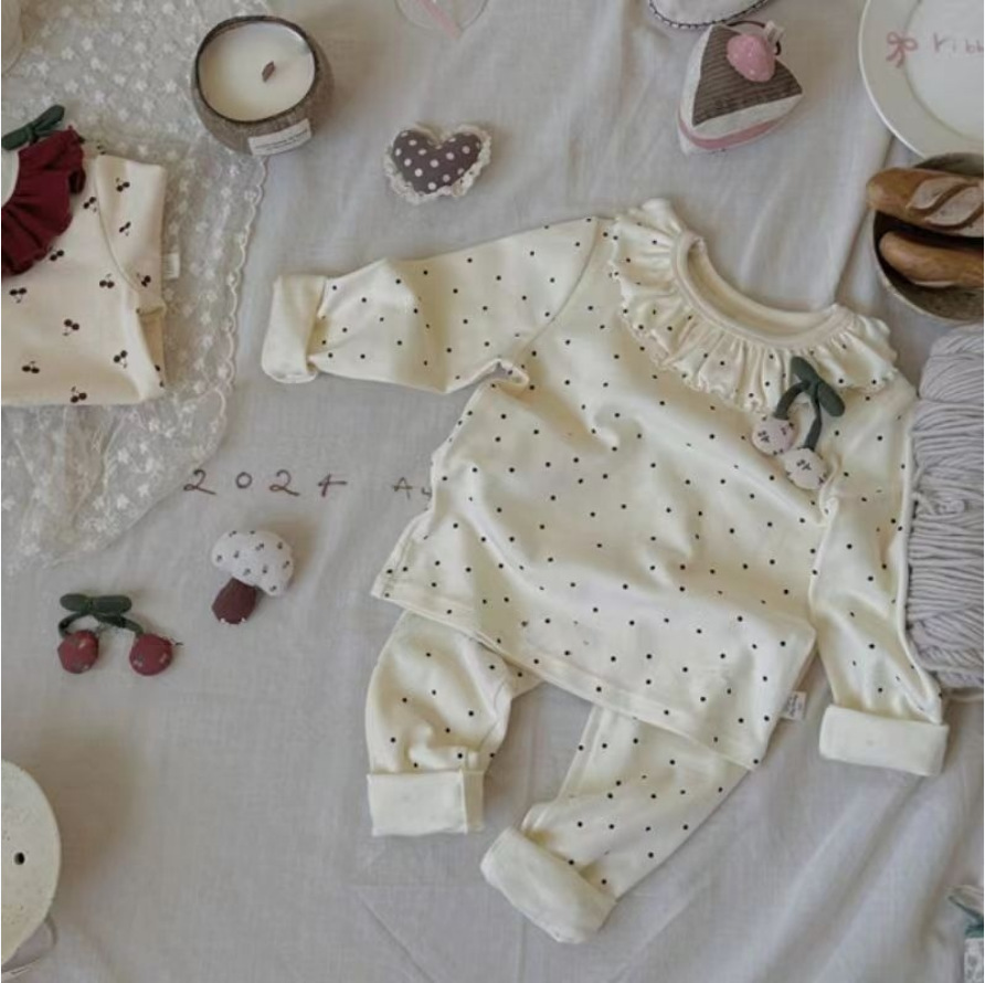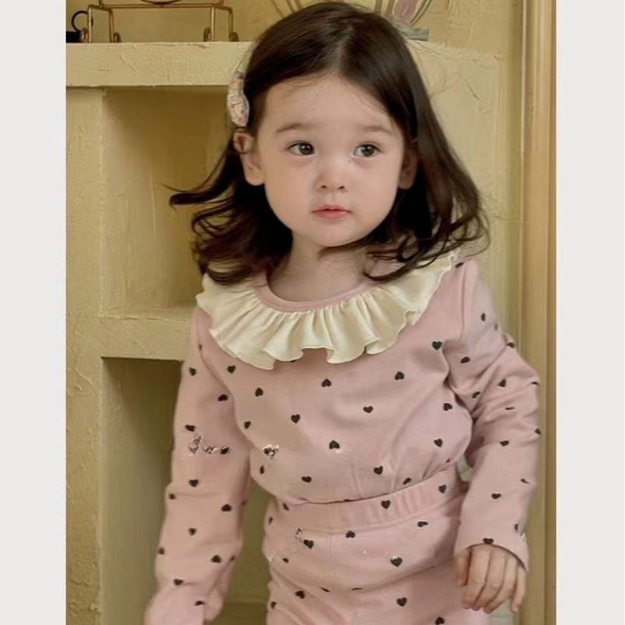 한국 어린이 집 옷 2024 세트 봄 가을면 가을 옷과 바지 아기 편안한 부드러운 속옷 투피스 세트