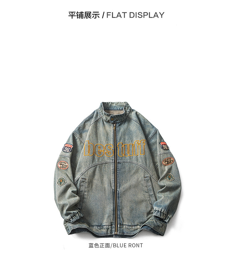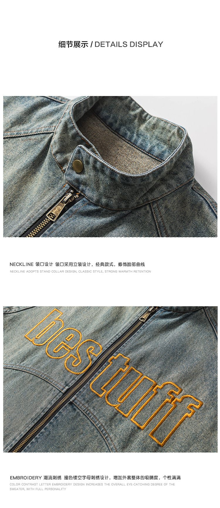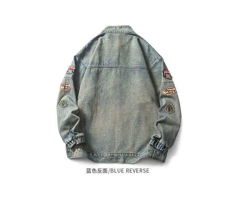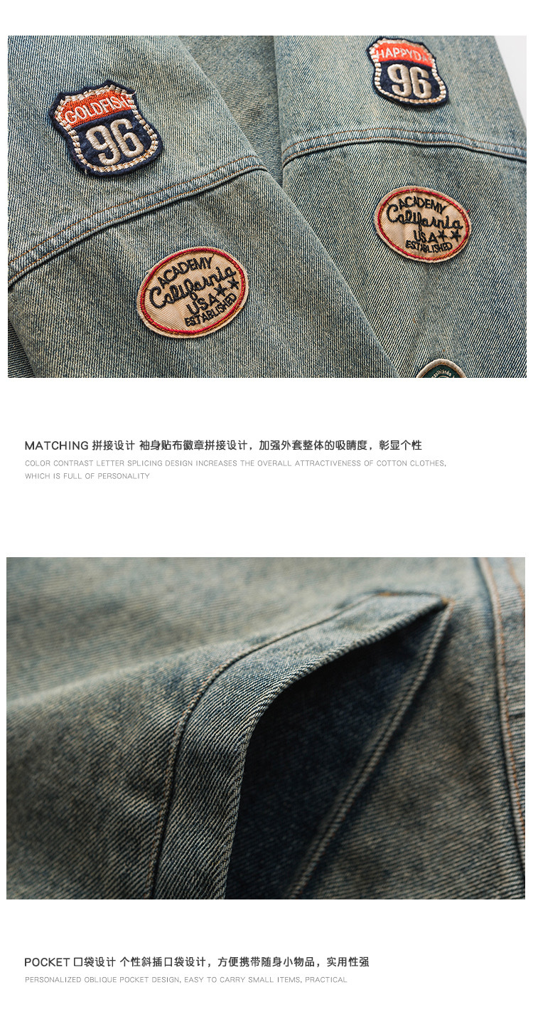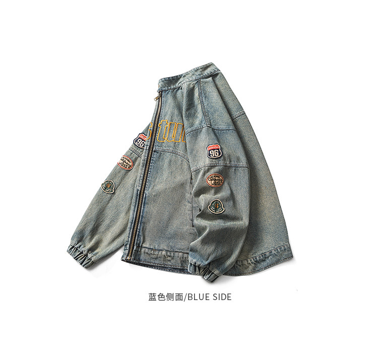 청소년 인기있는 세탁 데님 재킷 코트 레트로 홍콩 스타일 긴 소매 칼라 세련된 디자인 센스 청소년과 소녀스토어 가기