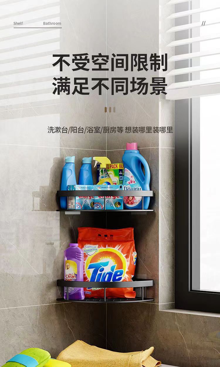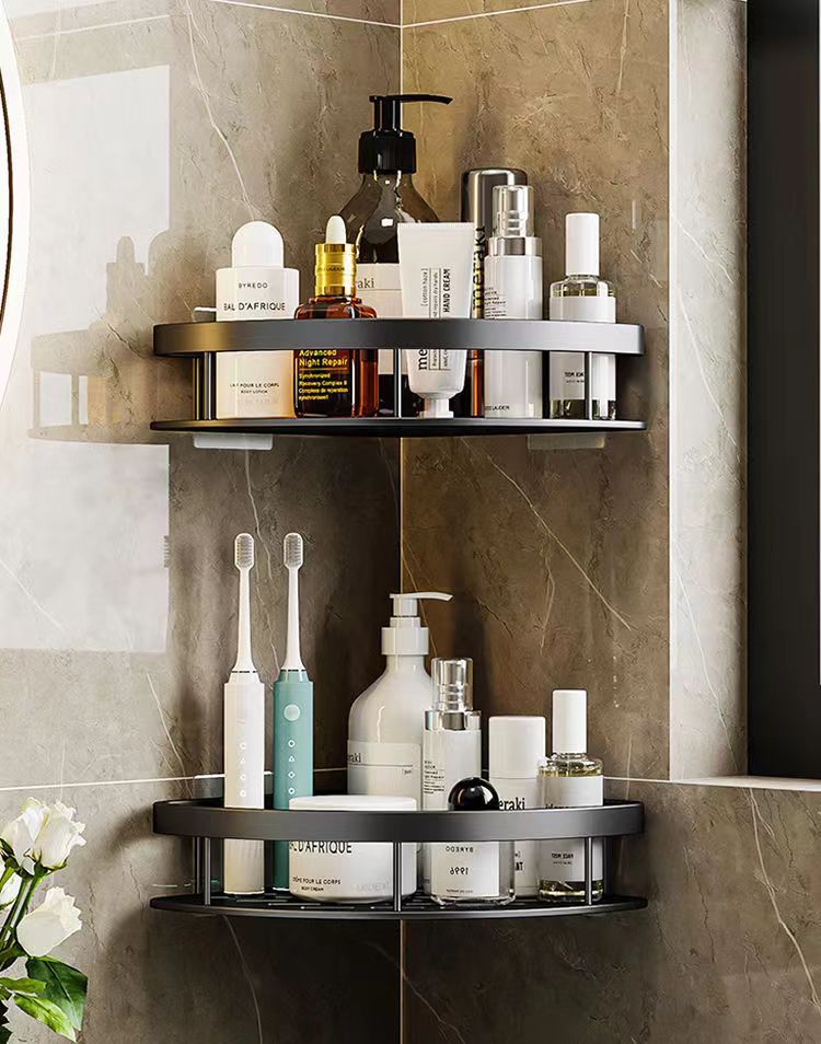 펀치없는 화장실 욕실 보관 랙 ABS 플라스틱 삼각형 바구니 화장실 세면대 벽걸이 보관 선반스토어 가기