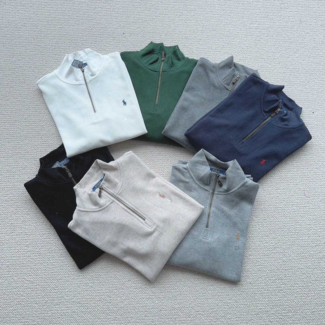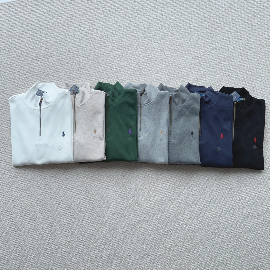 국경 간 공급 RL Ralph Lauren 스웨터 여성 반 지퍼 RL 조랑말 로고 자수 커플 스탠드 칼라 긴팔 남성스토어 가기