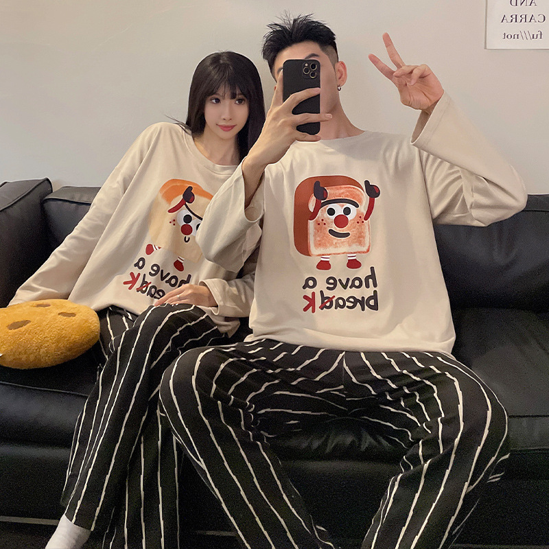 가을 새 커플 잠옷 긴팔 바지 [가슴 패드 포함 여성 스타일] 남성 홈웨어 세트 한국 스타일 크로스 보더스토어 가기