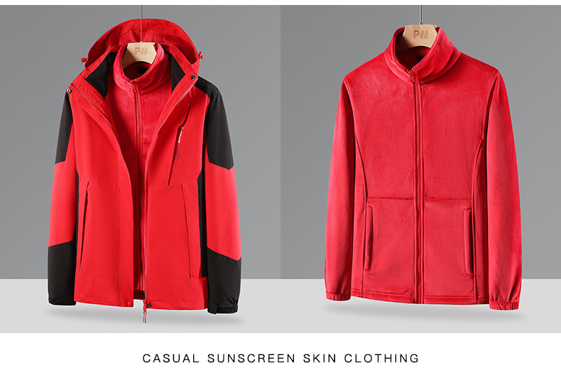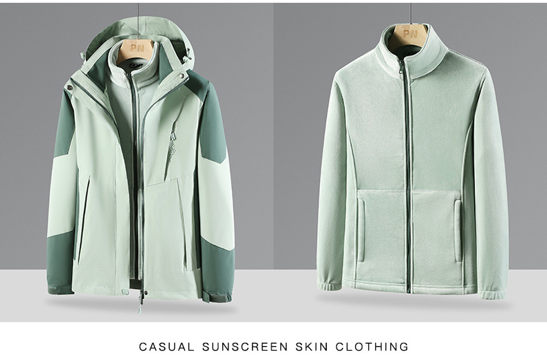 1818S 자수 로고 러시 의류 여성용 3 대 1 이동식 라이너 방풍 및 남성용 방수 2 피스 재킷