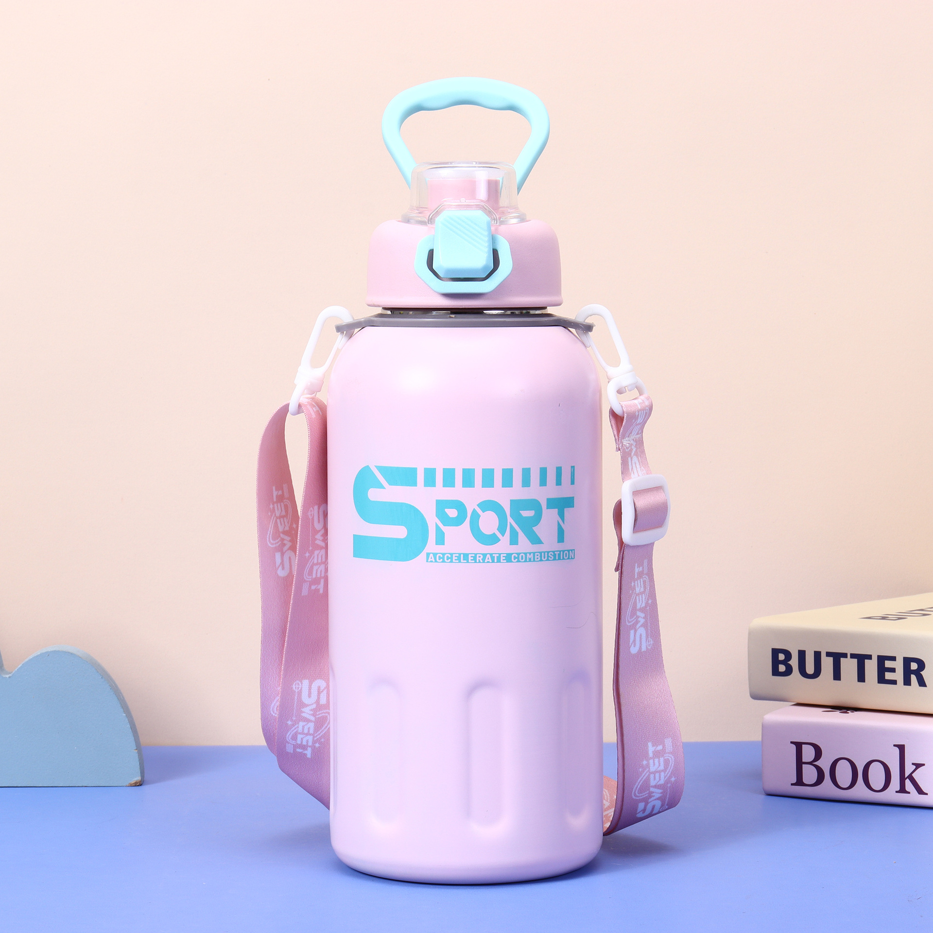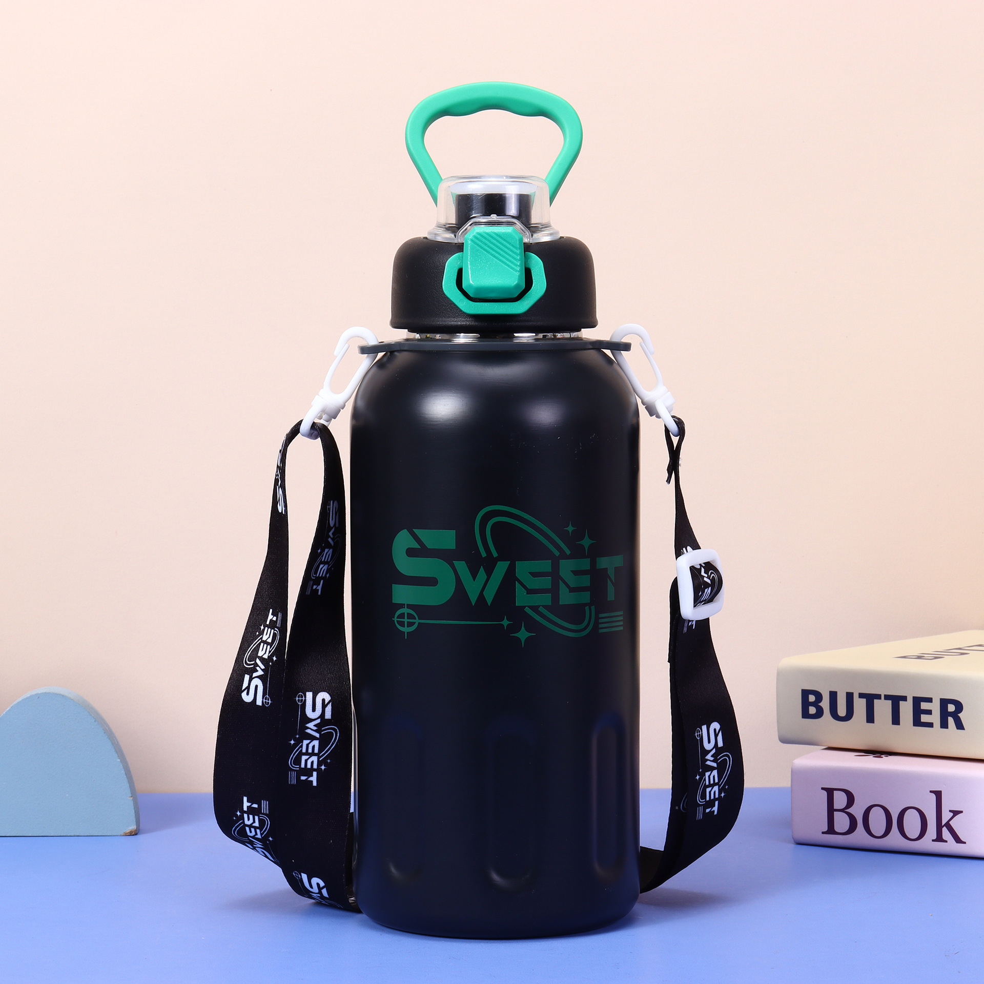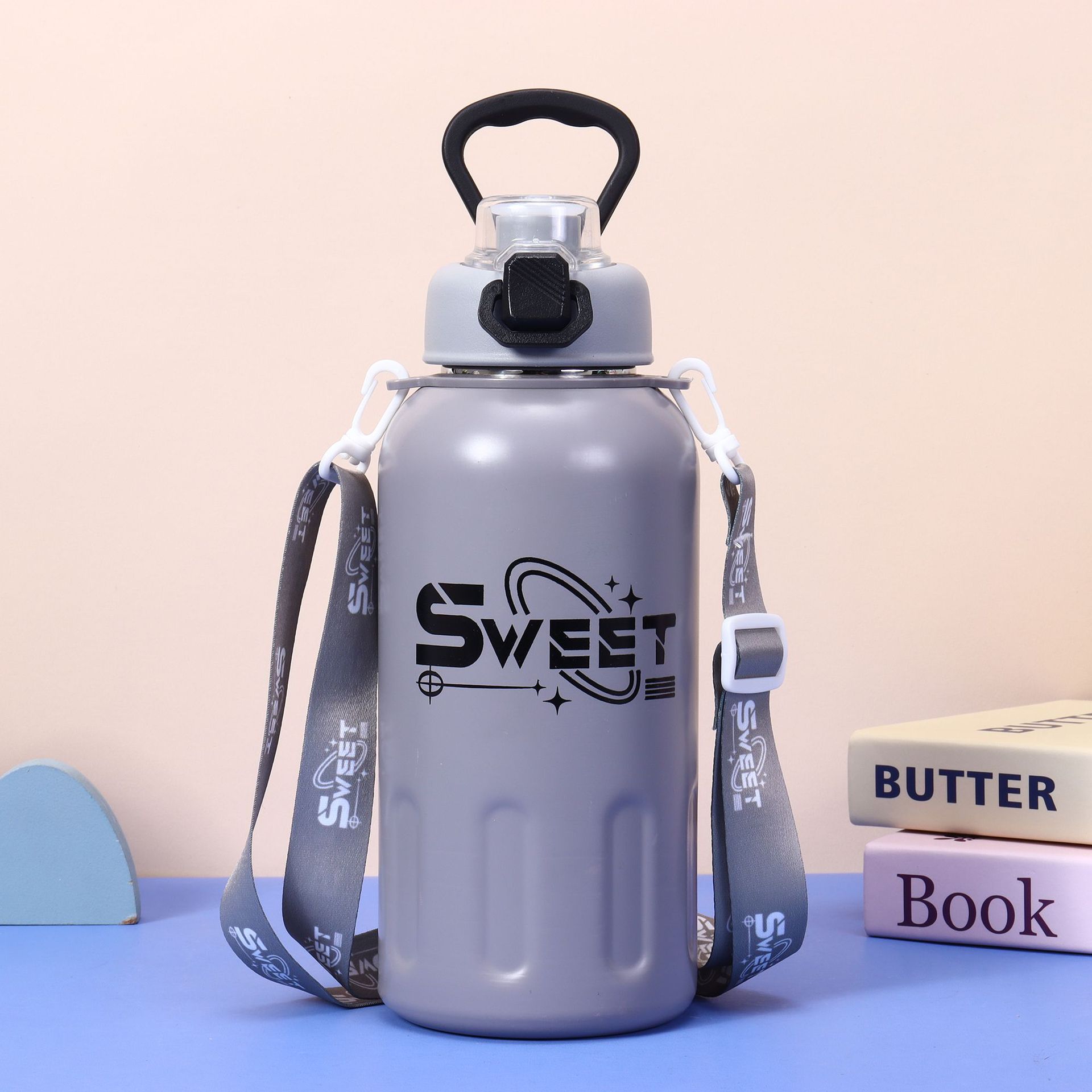 높은 색상 가치 새로운 스테인레스 스틸 보온병 컵 패션 진공 더블 마시는 핸들 컵 야외 휴대용 등산 물병