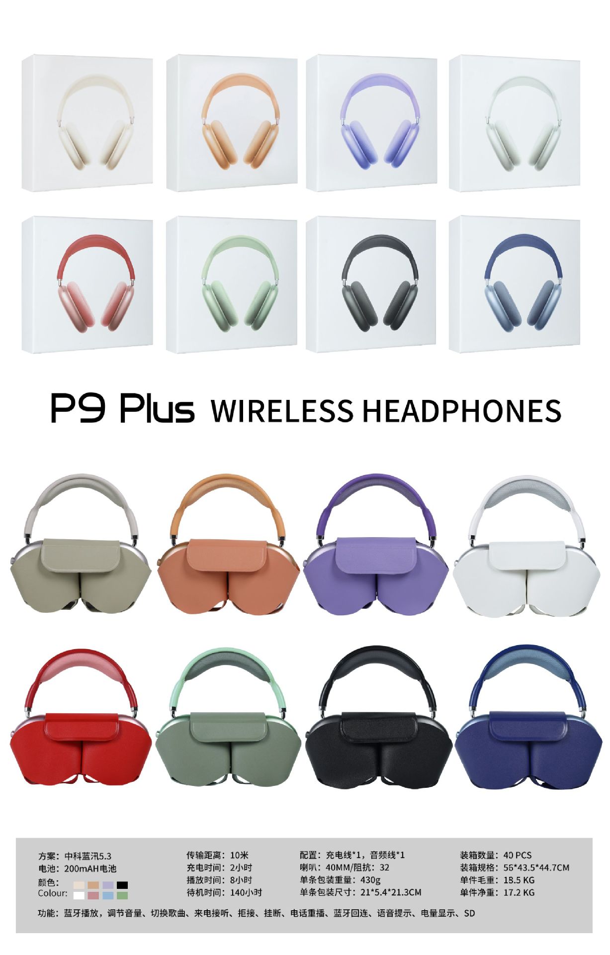 국경을 넘는 인기 상품 P9Plus 무선 헤드셋 블루투스 이어폰 화창북 노이즈 캔슬링 마이크 내장 스포츠 이어폰 범용