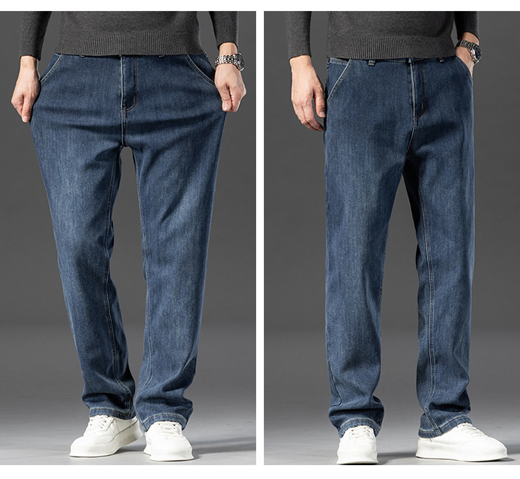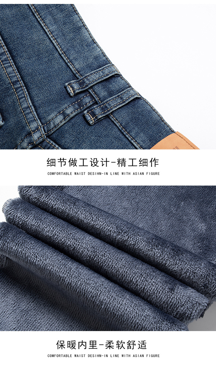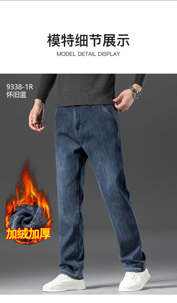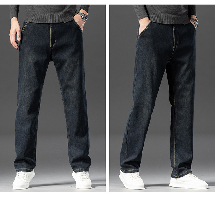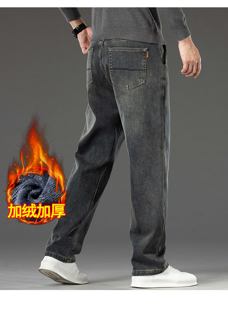 고급 기모 두꺼운 청바지 남성용 느슨한 가을 및 겨울 넓은 다리 남자 바지는 벨벳으로 중년 긴 바지를 스트레칭스토어 가기