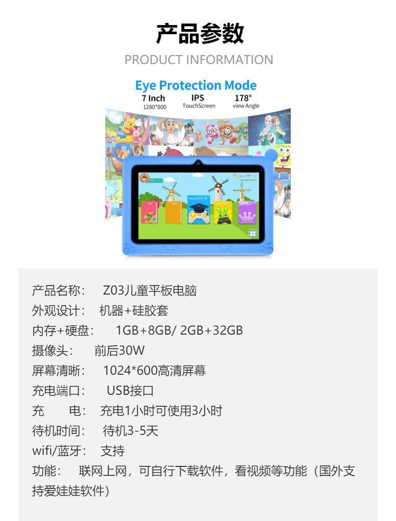 공장 도매 대외 무역 새로운 7 인치 어린이 태블릿 스마트 조기 교육 기계 와이파이 블루투스 국경 전자 상거래