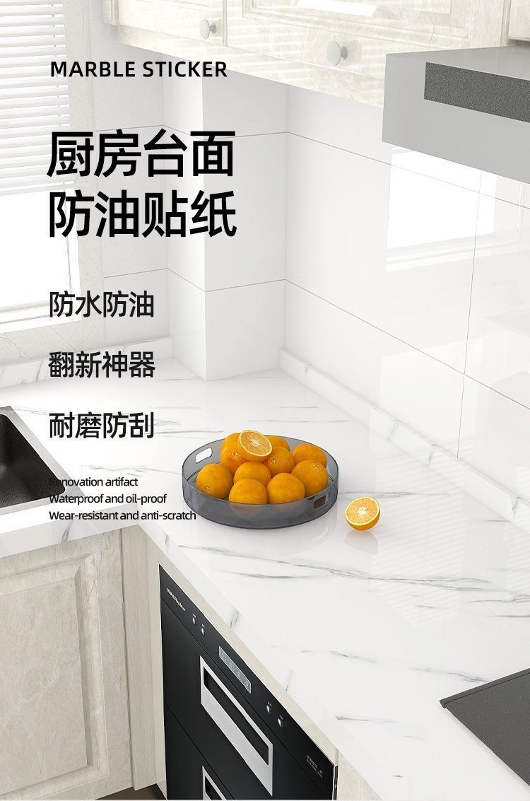 주방 스티커 방수 및 오일 방지 대리석 조리대 색상 변경 필름 스토브 벽 캐비닛 고온 내성 자체 접착 벽지