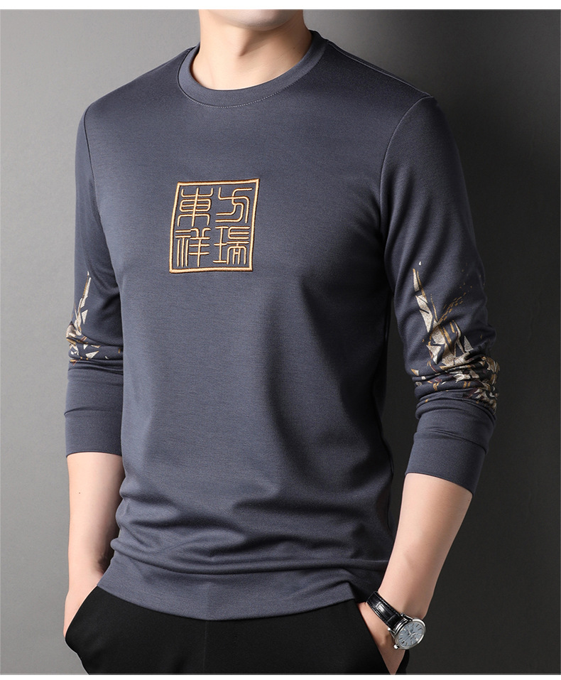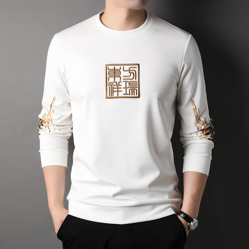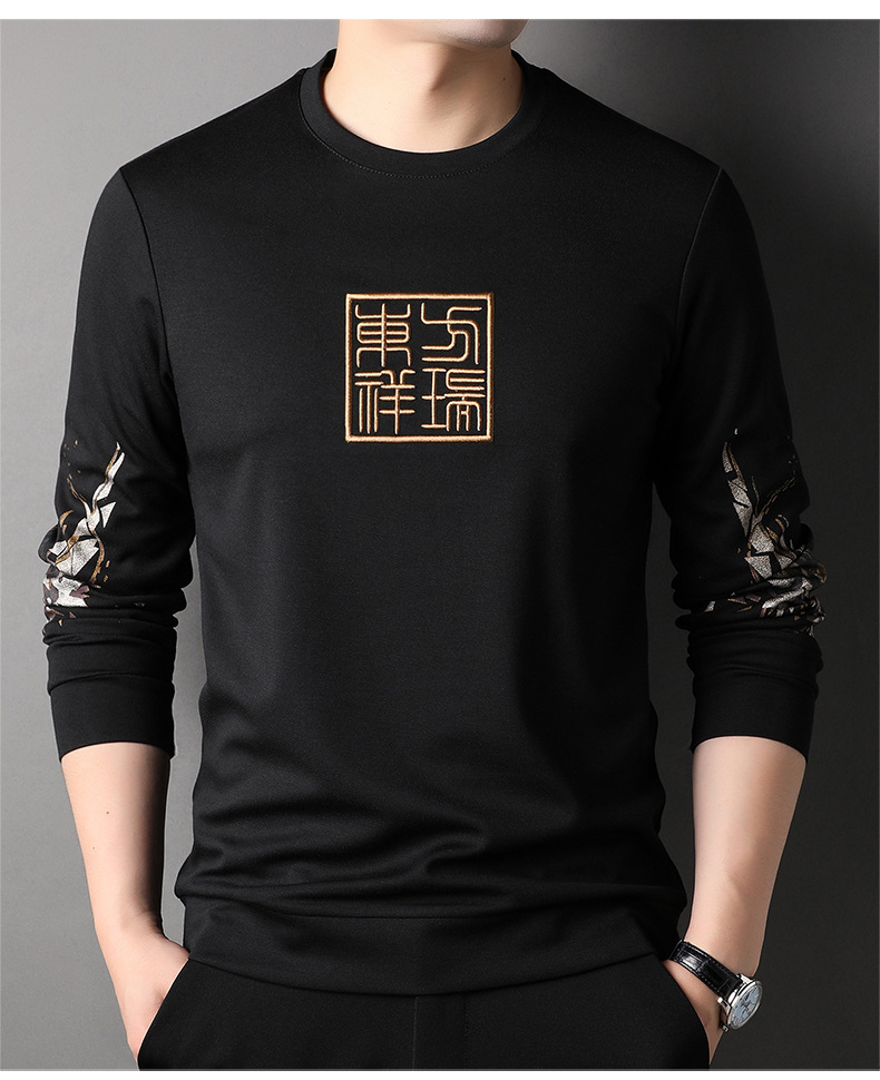 세련된 한국식 긴팔 프린트 스웨트 셔츠 남자의 2024 봄과 가을 새로운 우아한 잘 생긴 올매치 캐주얼 루즈 탑 트렌디스토어 가기