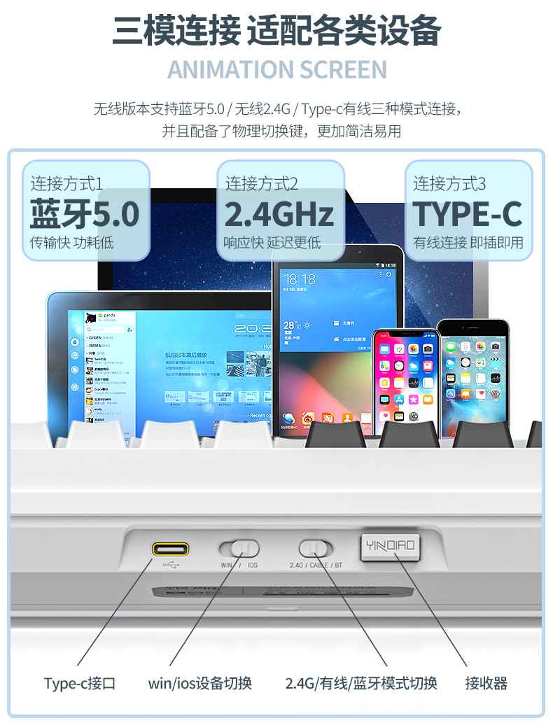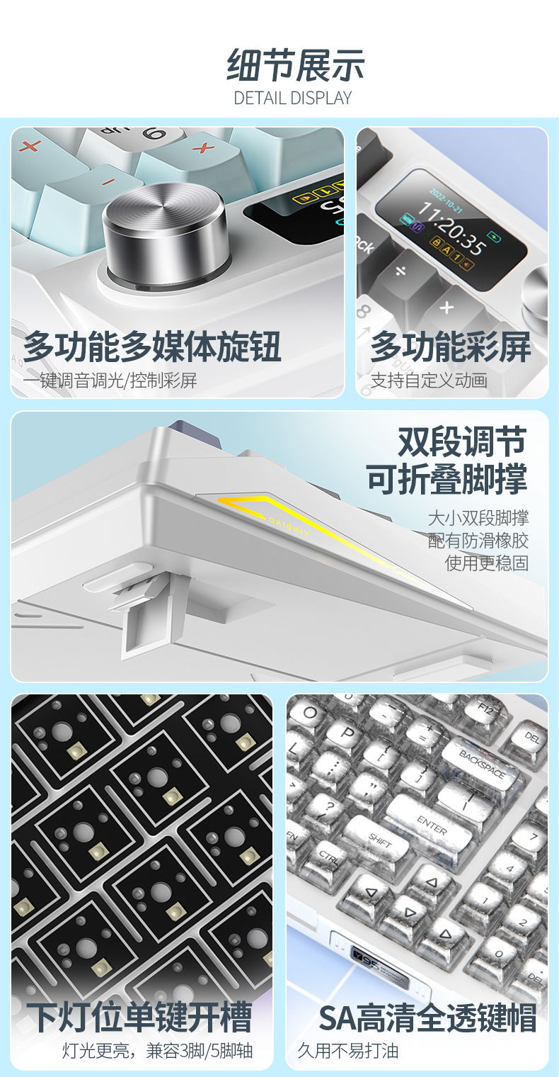 RGB 유선 게임 가스켓 컴퓨터 주변기기 Y95D 투명한 무선 블루투스 3 모드 기계식 키보드 98스토어 가기
