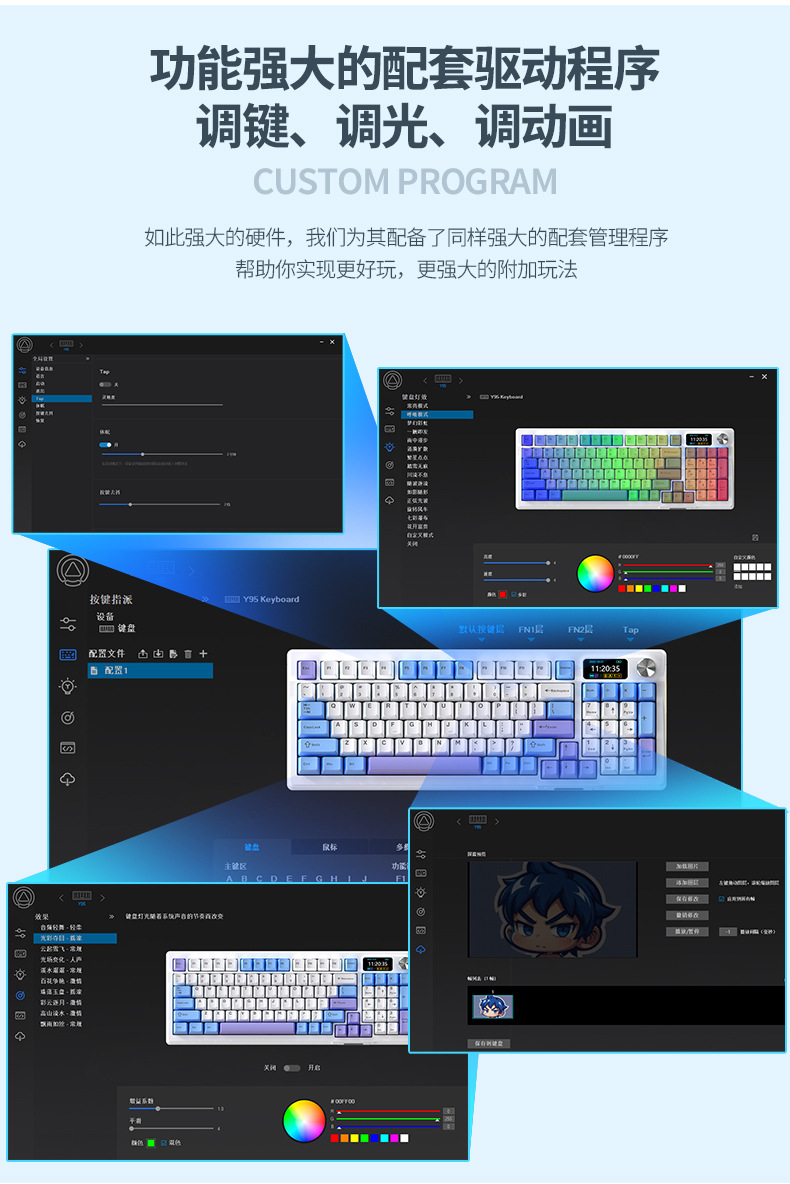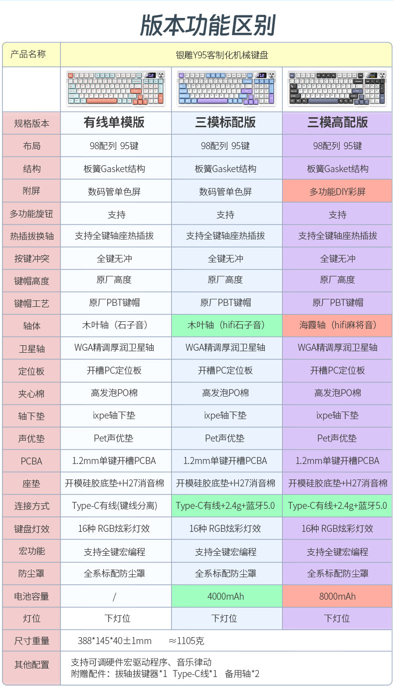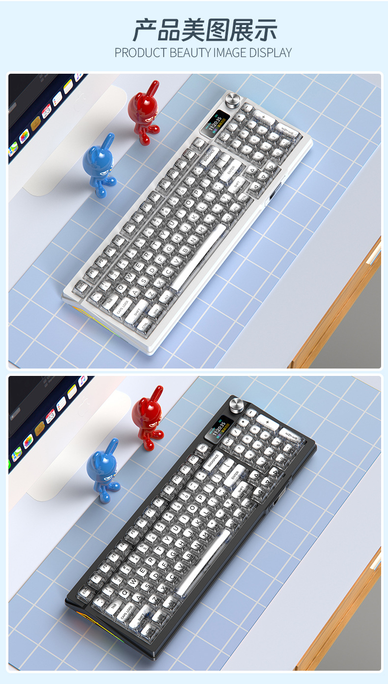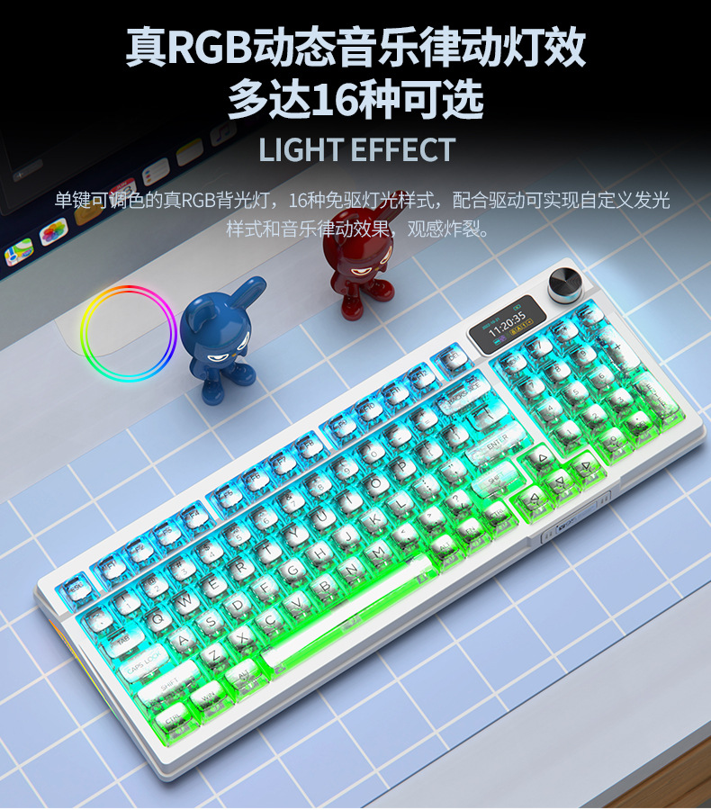 RGB 유선 게임 가스켓 컴퓨터 주변기기 Y95D 투명한 무선 블루투스 3 모드 기계식 키보드 98