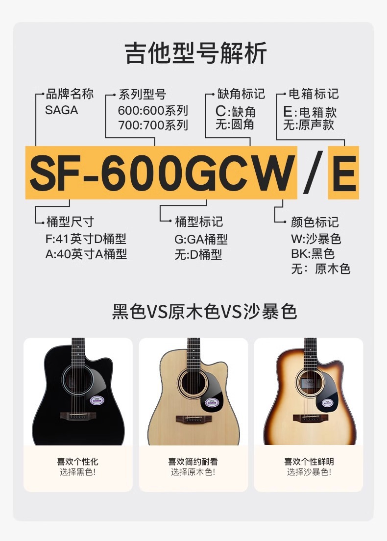 SAGA sf600 사가 플래그십 정품 초보자 민속 어쿠스틱 박스 어쿠스틱 기타 소년 소녀 도매