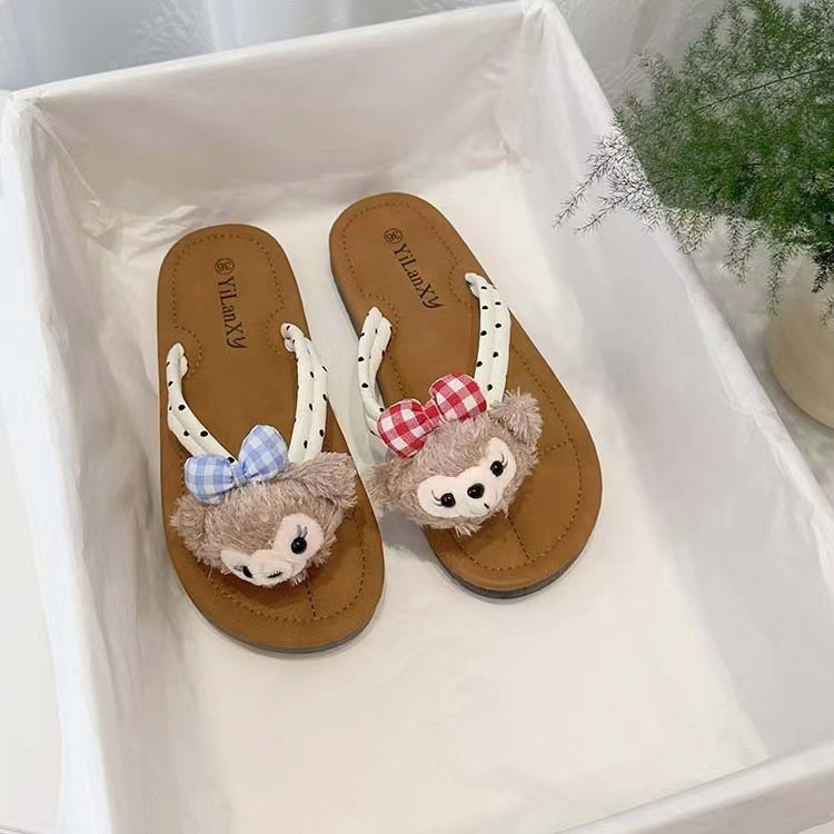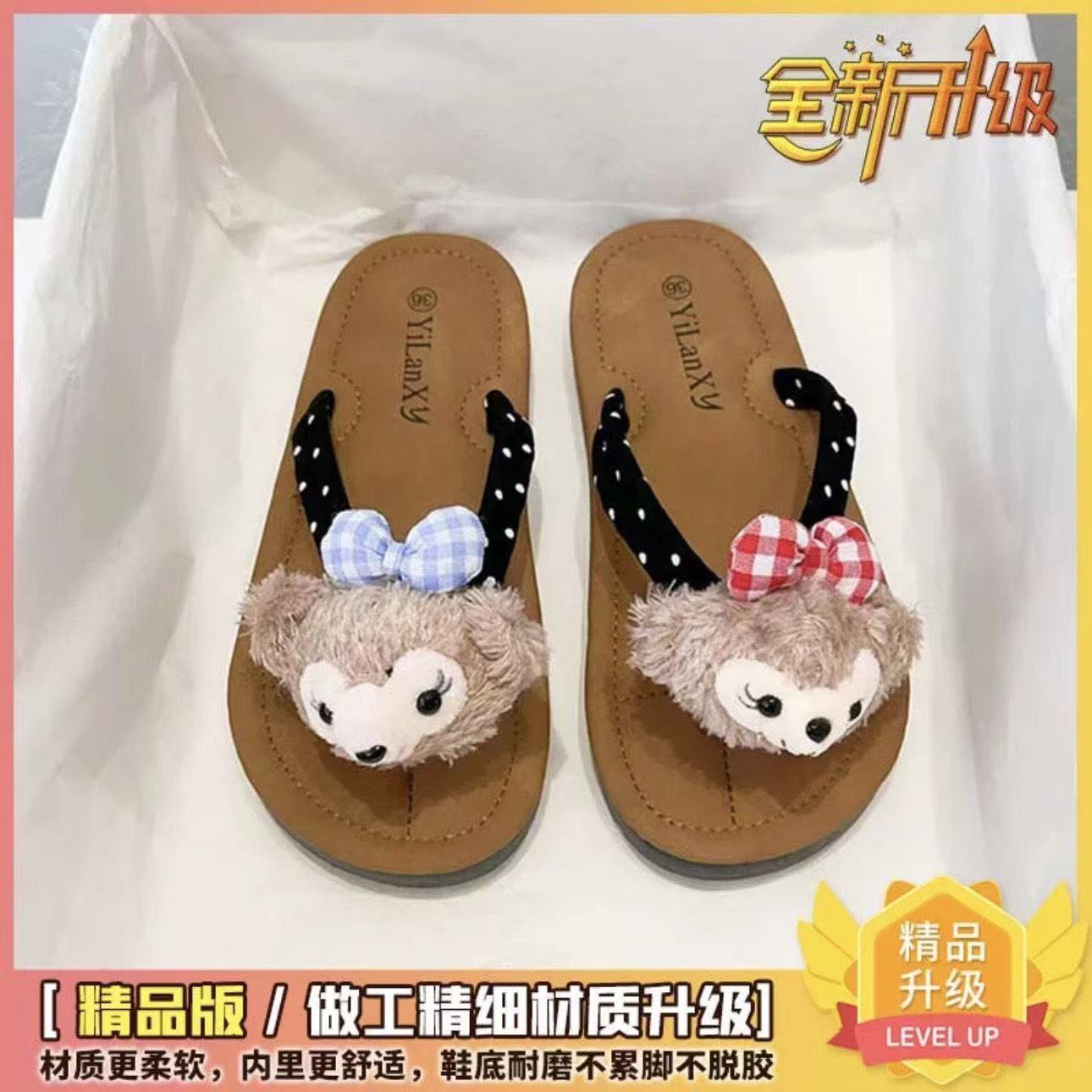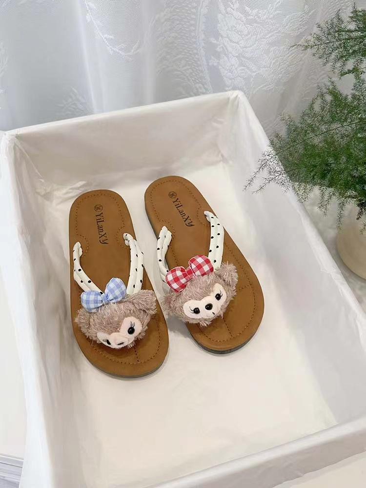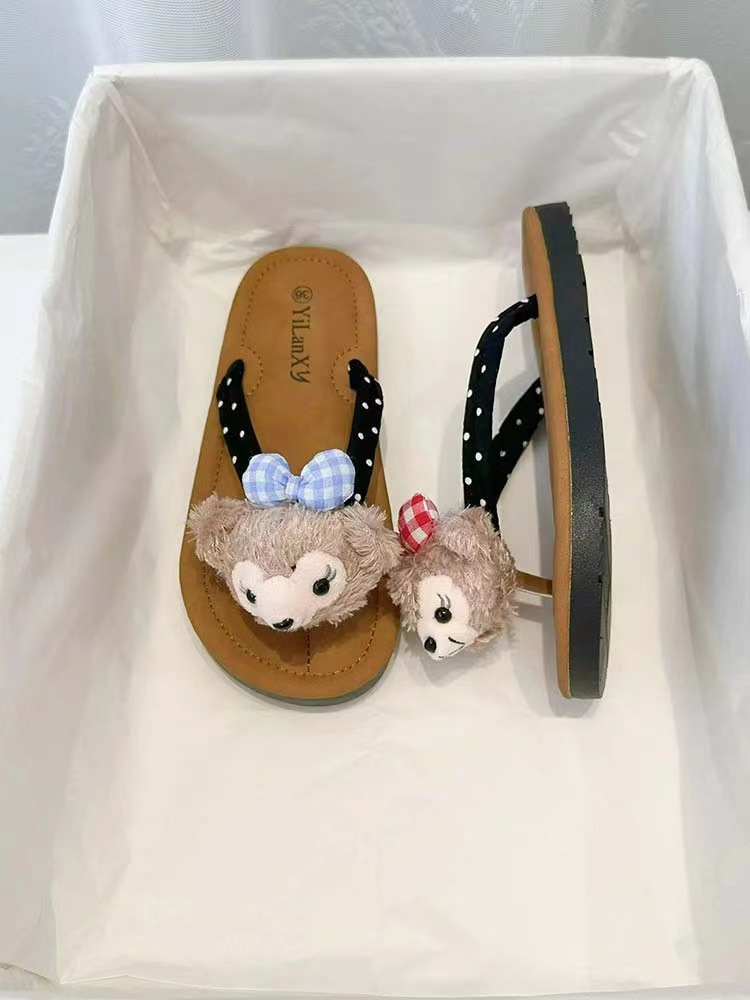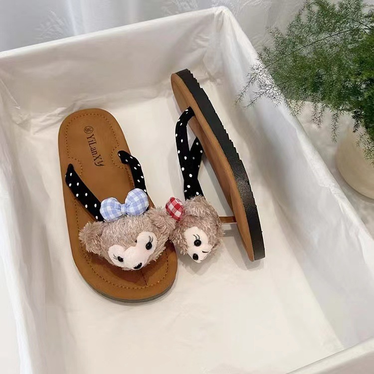 귀여운 만화 가리 하트 플랫 플립 여성 여름 의상 2024 새로운 슈퍼 파이어 비 슬립 소프트 바닥 샌들스토어 가기