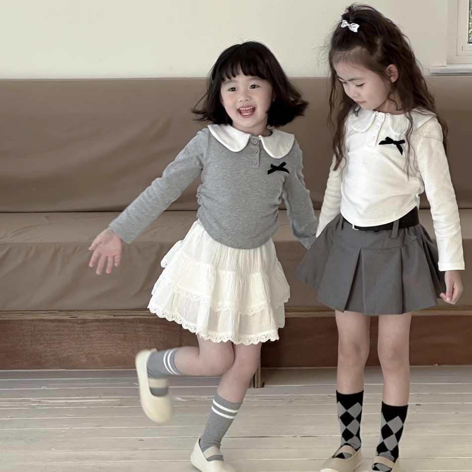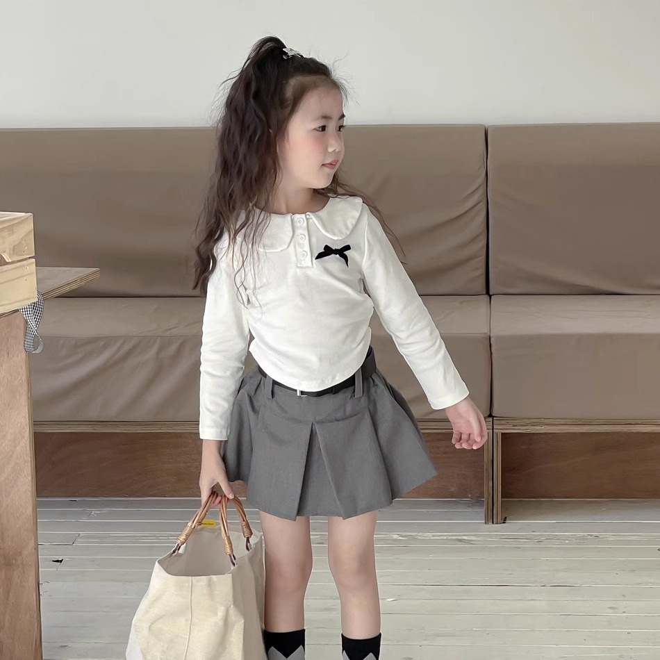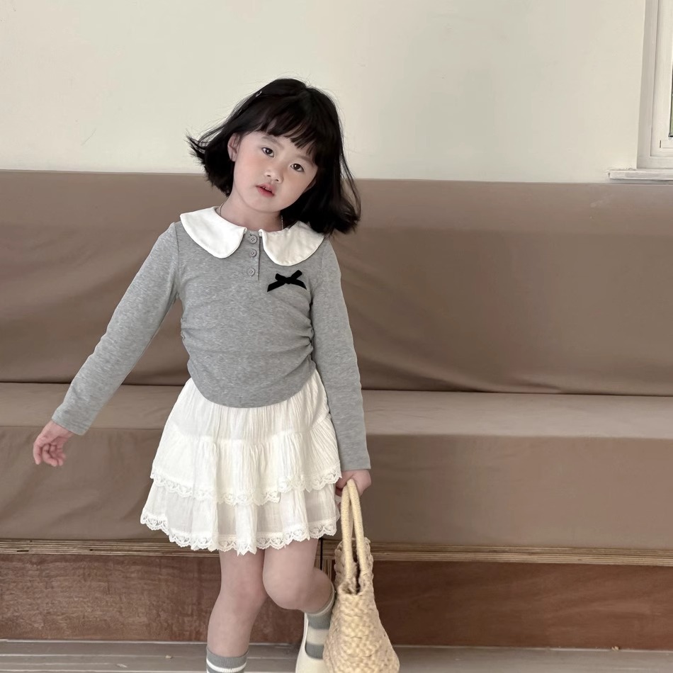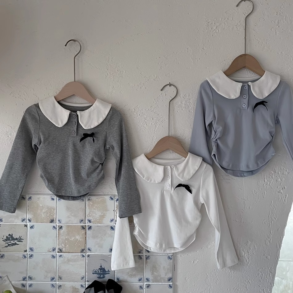 2024 가을 소녀베이스 셔츠 봄과 가을 순면 인형 칼라 슬림핏 서양식 가을 착용 어린이 여성용 짧은 탑